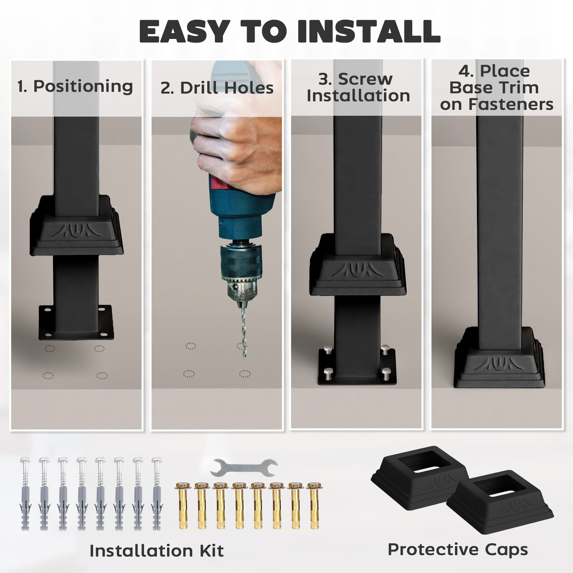 • – Easy to assemble, installation kit included