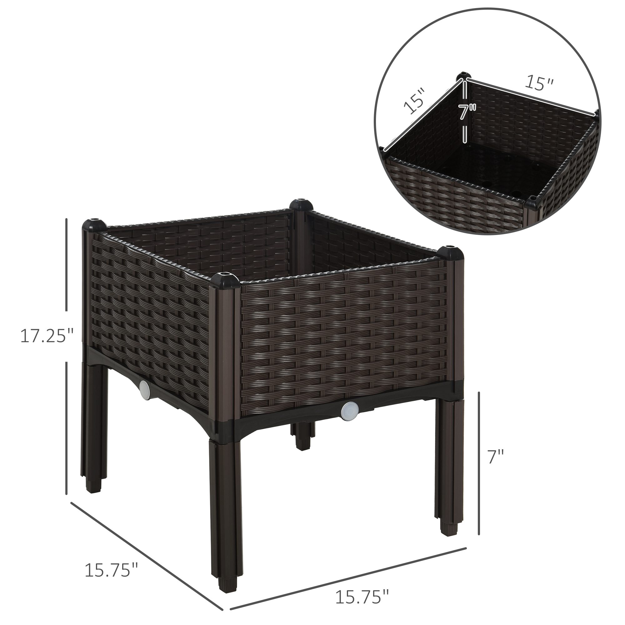 • – Planting Area Dimension: 15″ L x 15″ W x 7″ H
