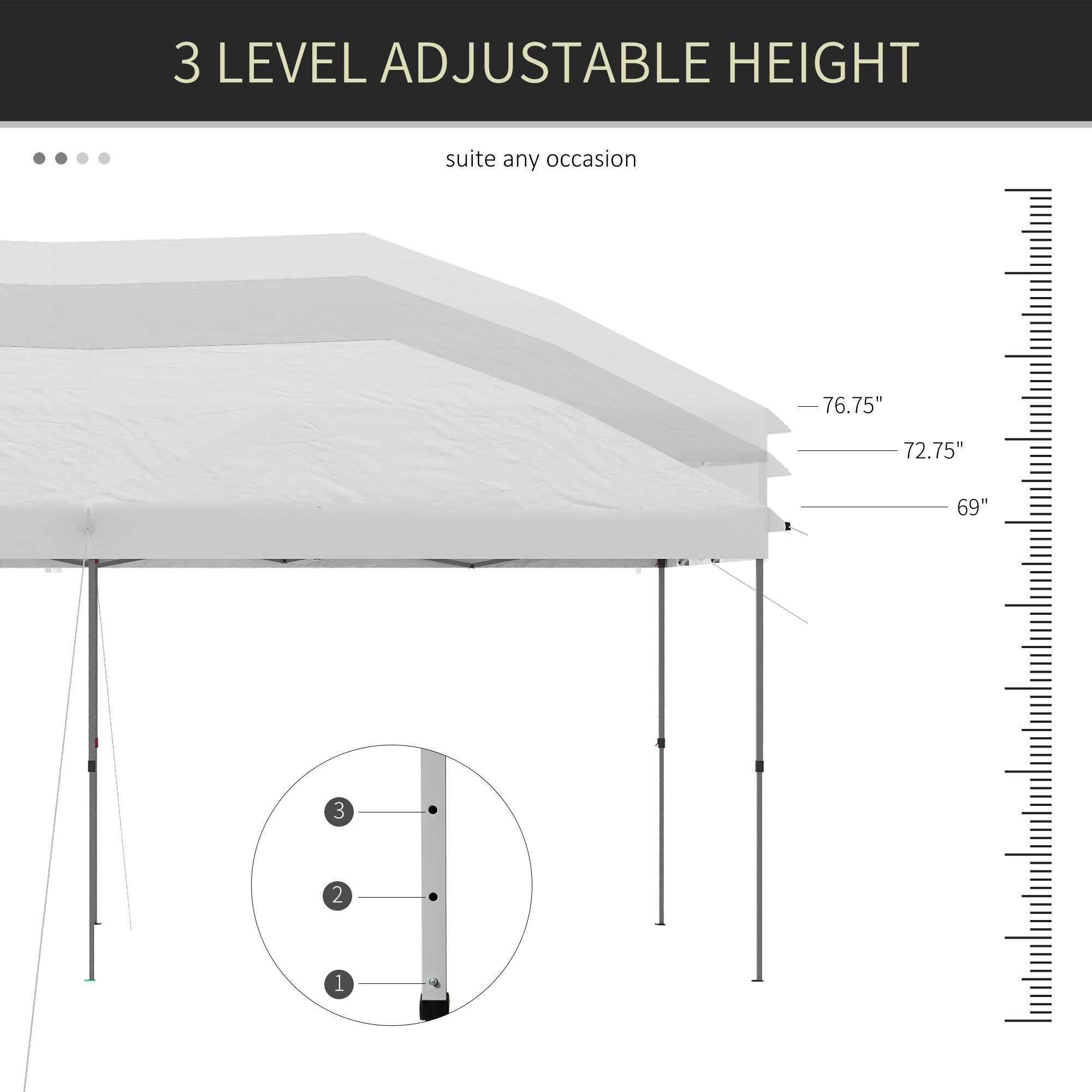 - – Excellent shade solution for weddings, outdoor parties, or as a vendor’s booth
