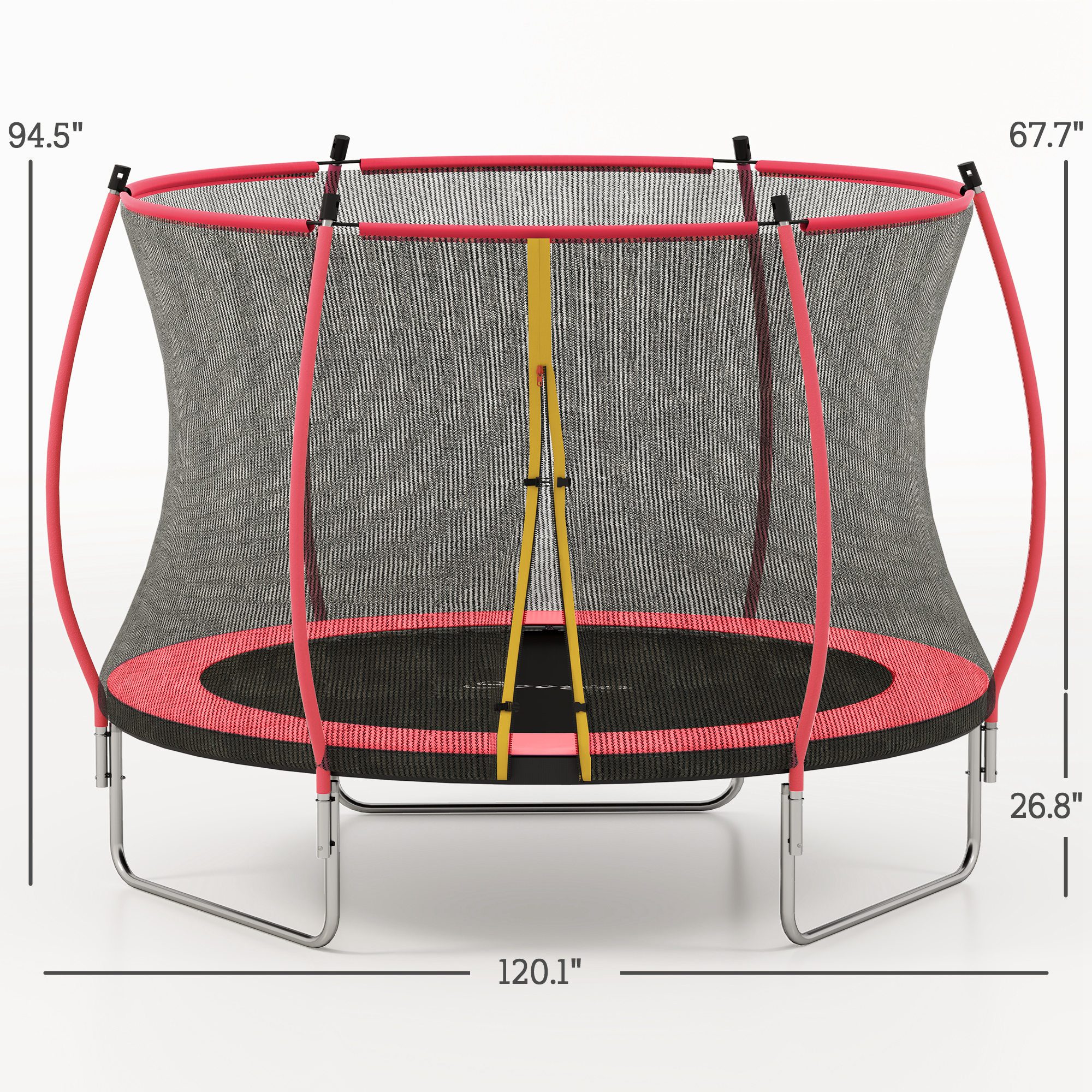 10ft Outdoor Trampoline with Net Enclosure, Curved Poles and Safety Pad, ASTM Approved, Red