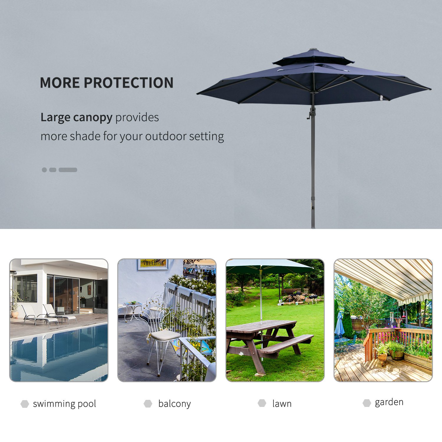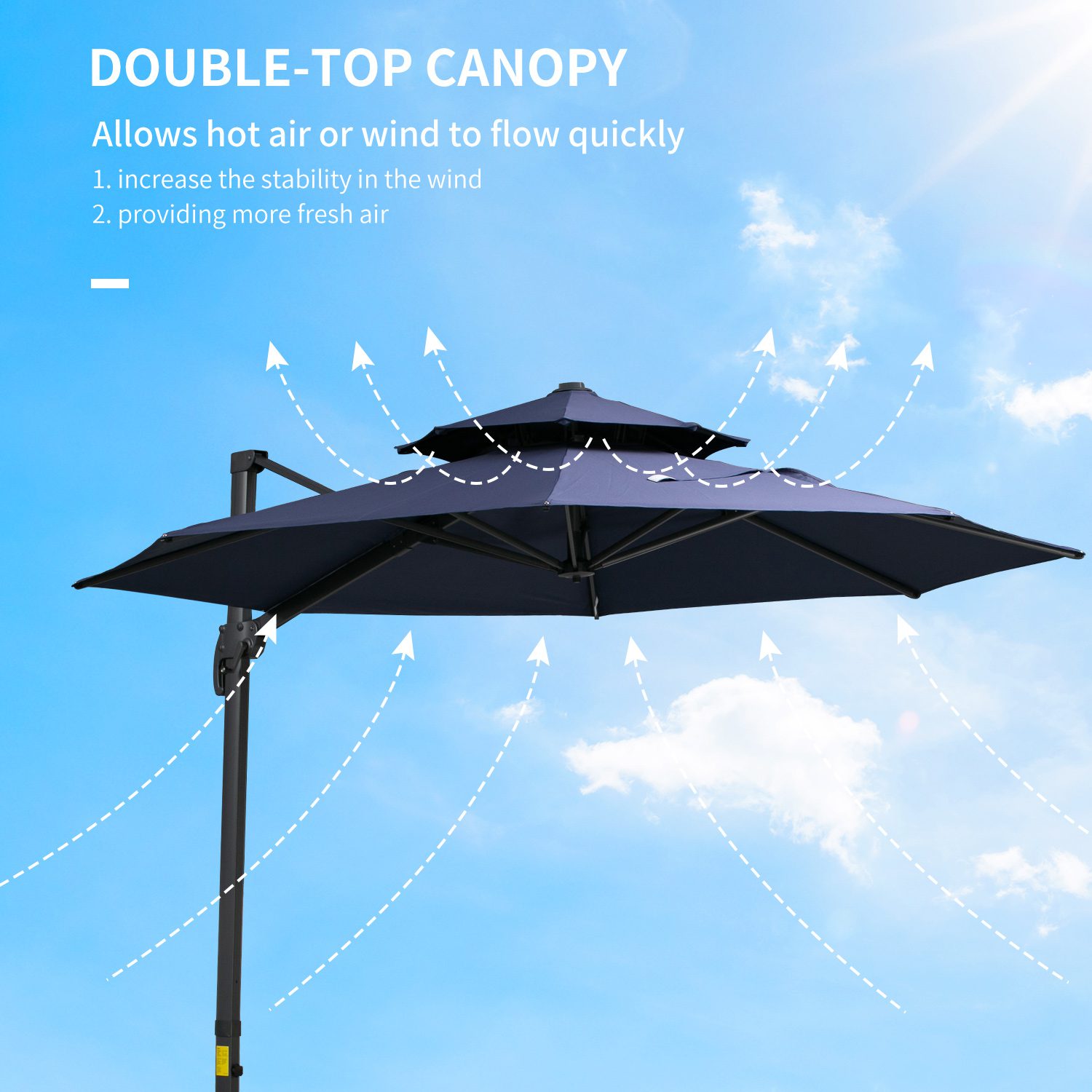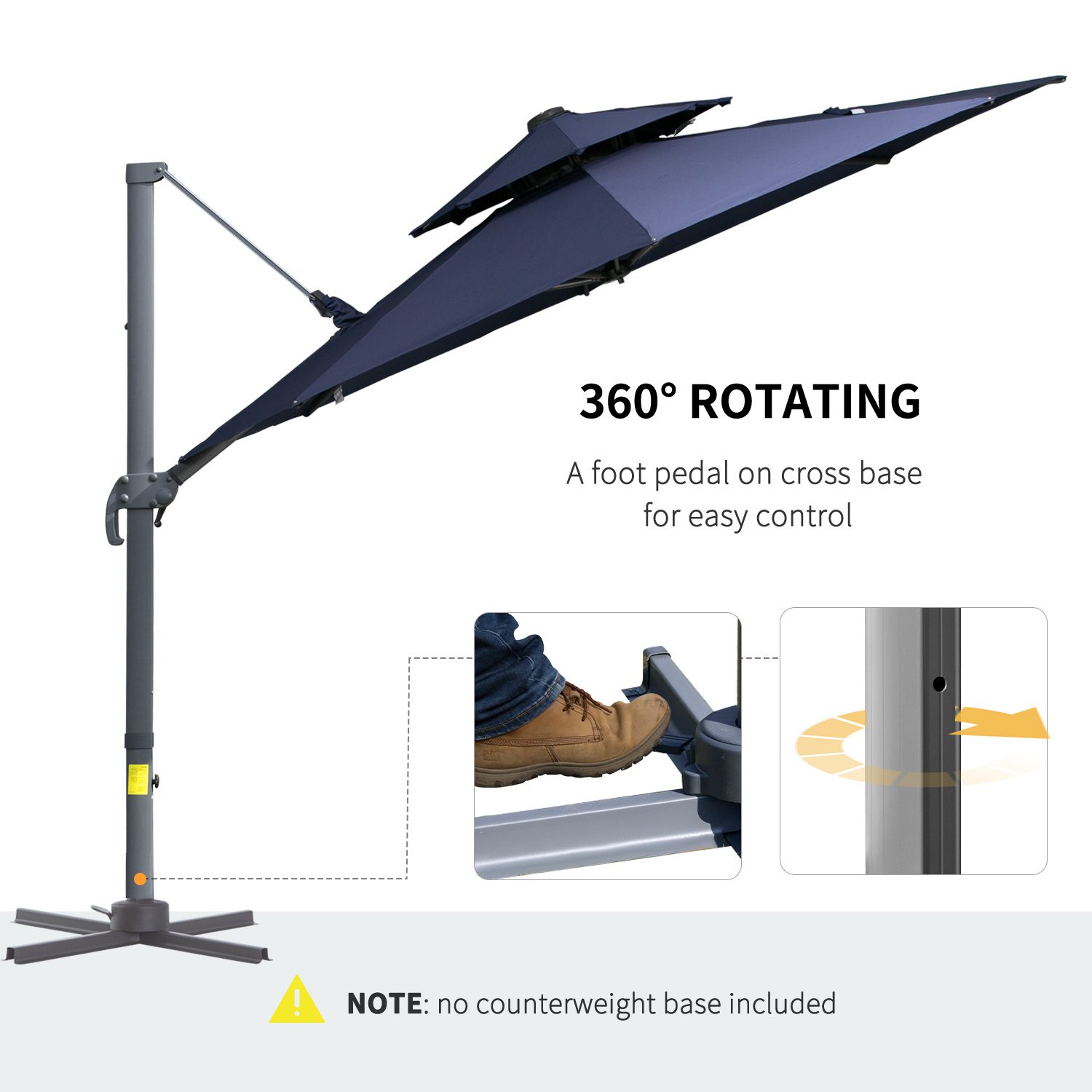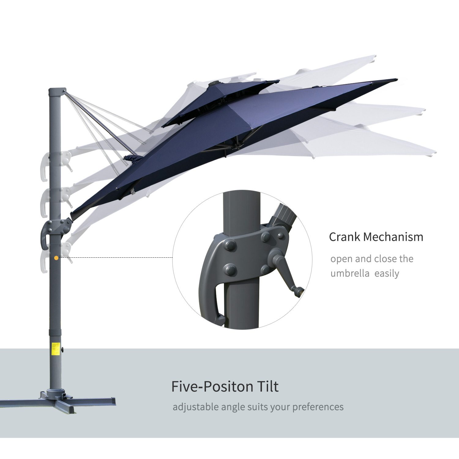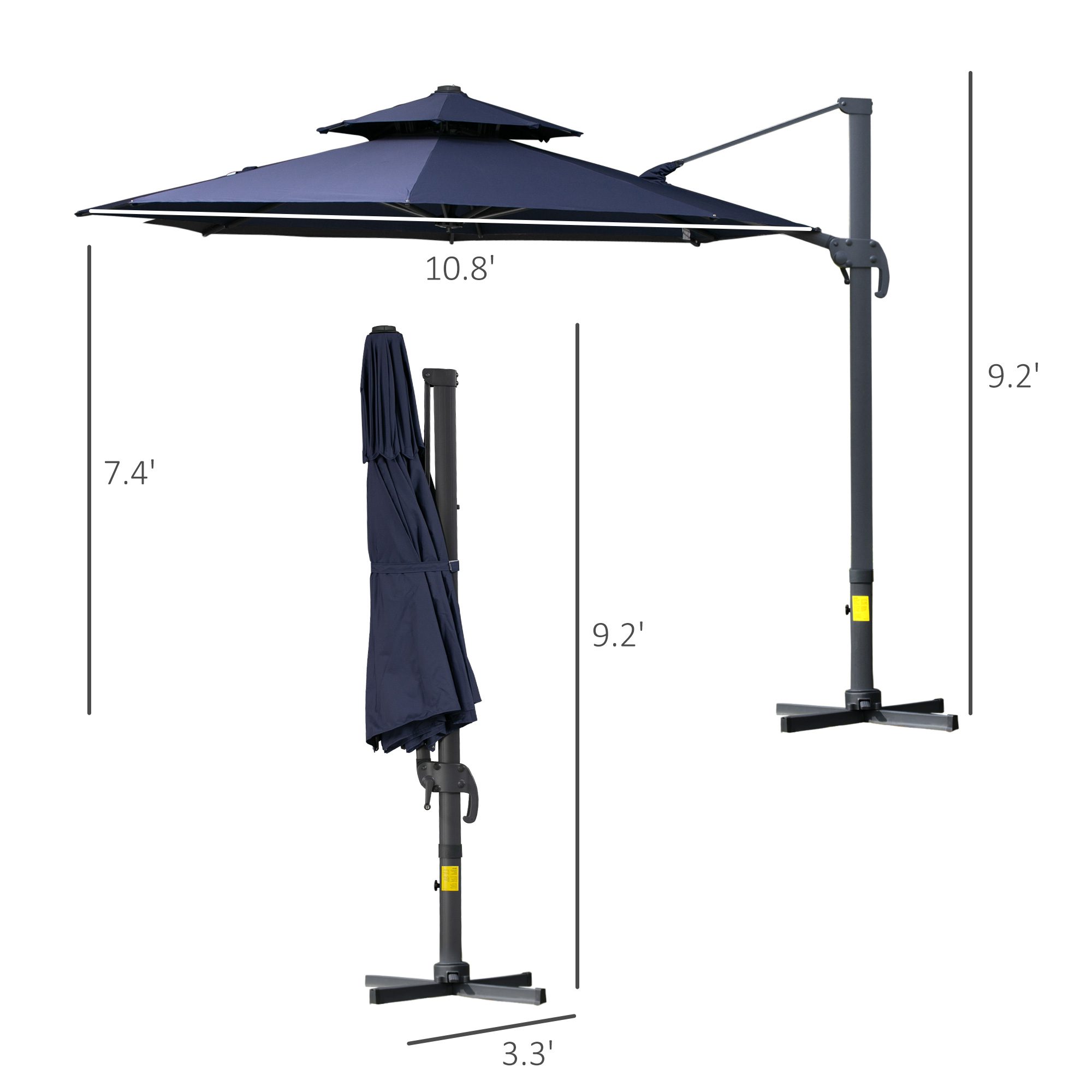 11ft Cantilever Patio Umbrella with Base, Double Top Hanging Aluminum Offset Umbrella with 360° Rotation, Easy Tilt, 8 Ribs, Crank, Cross Base for Backyard, Dark Blue