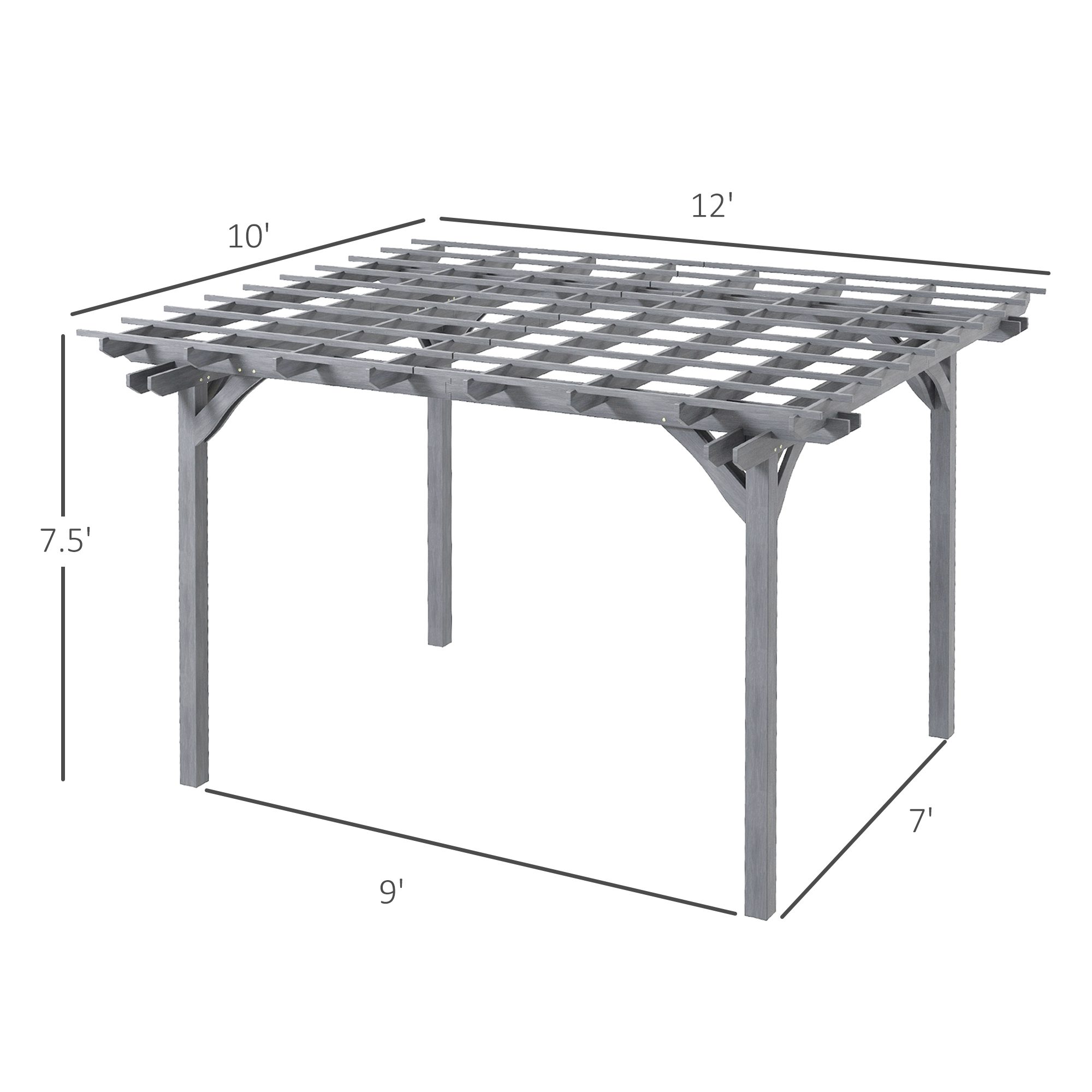 12′ x 10′ Wooden Pergola, Outdoor Grape Gazebo for Garden, Patio, Backyard, Deck, Gray