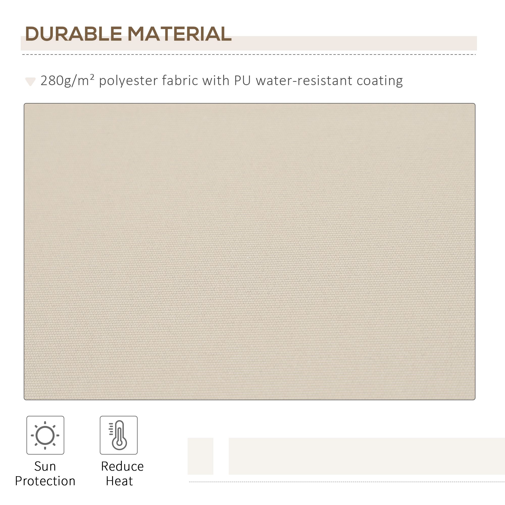 • – 280g polyester and PU coating fabric is water-resistant, anti-ultraviolet and resistant to sun fading