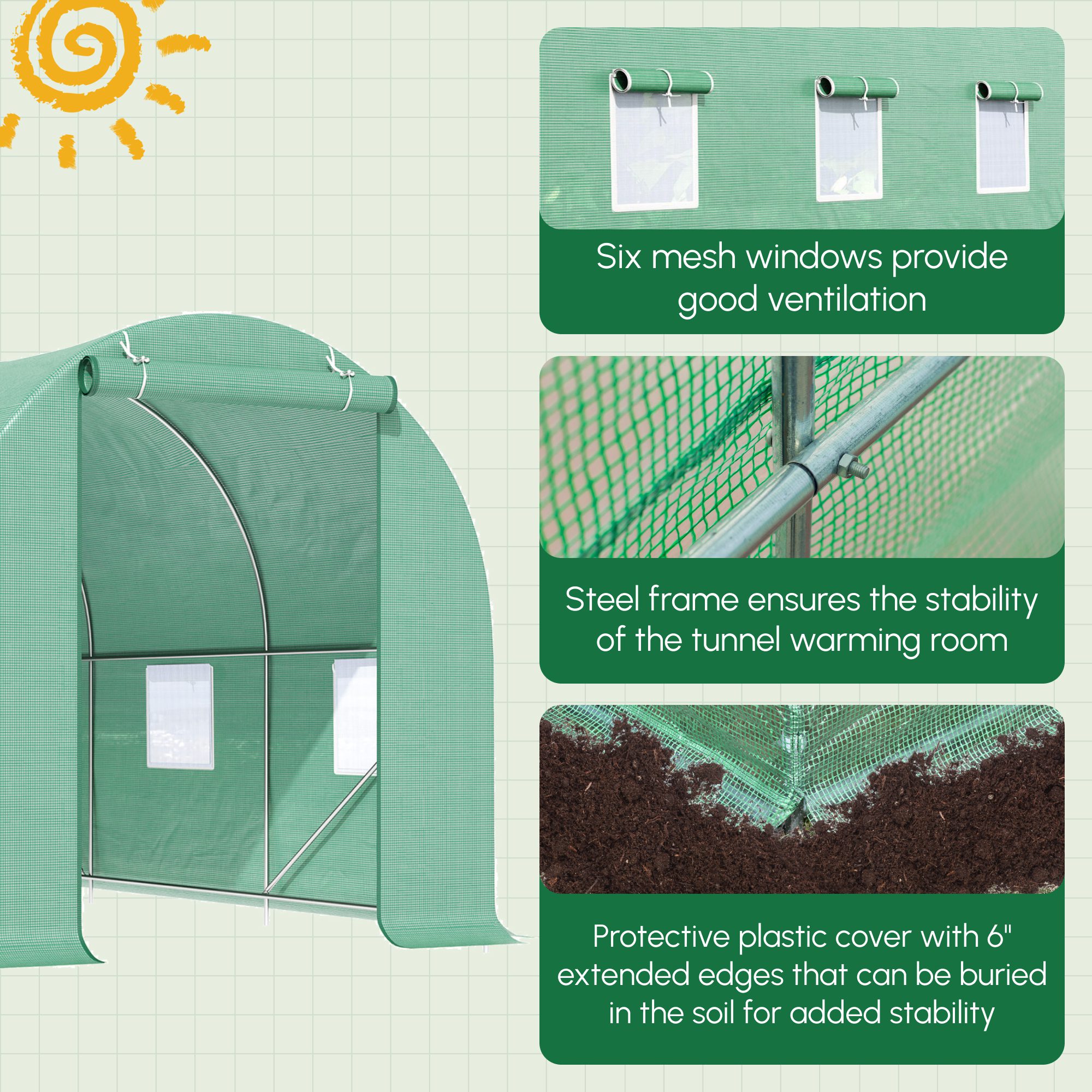 15′ x 7′ x 7′ Walk-in Tunnel Hoop Greenhouse, Green House for Outside with PE Cover, Steel Frame, Roll-Up Zipper Door & Windows for Flowers, Vegetables, Tropical Plants, Green