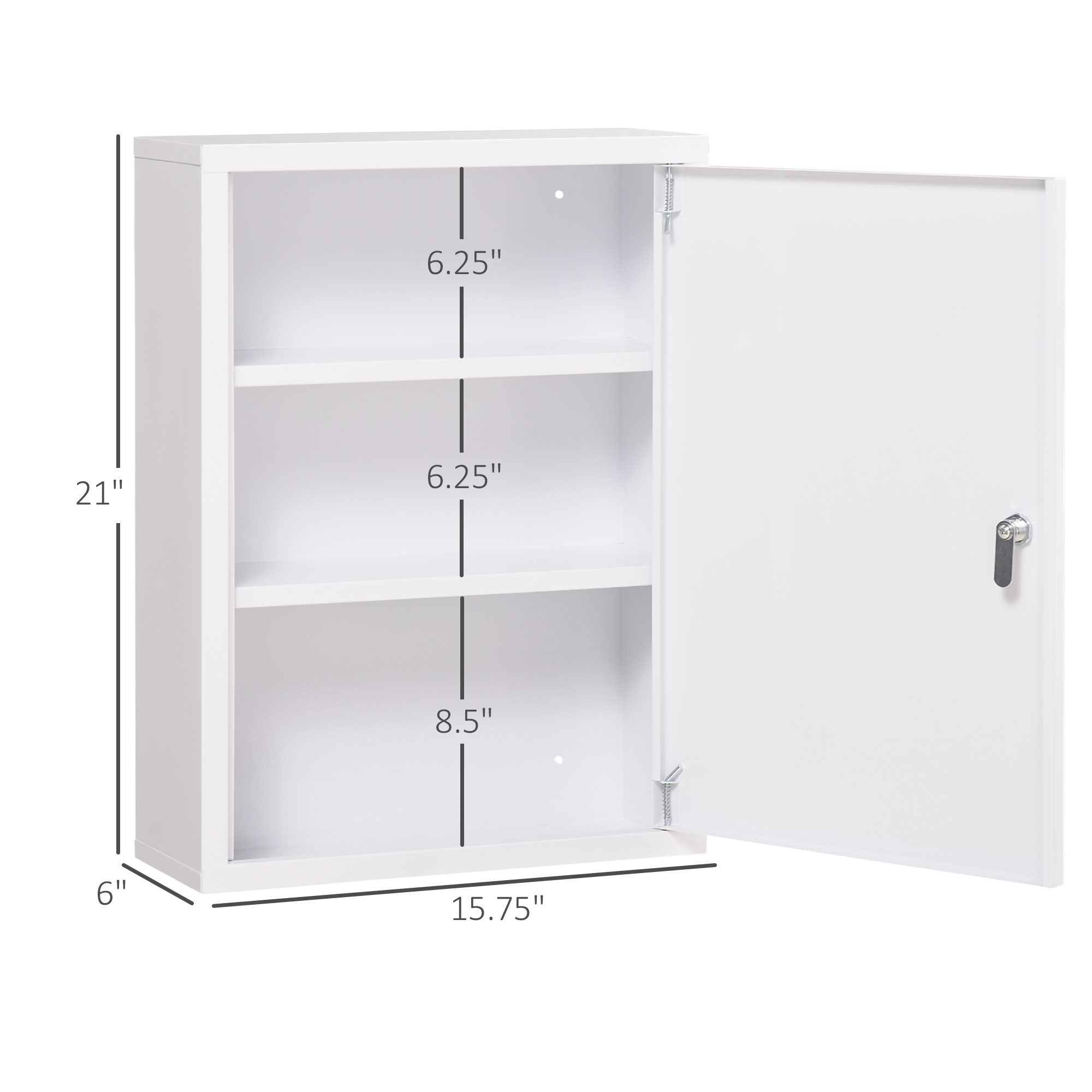 16" x 21" Lockable Medicine Cabinet, 3 Tier Steel Medical Wall Box with 2 Keys and Shelves for Bathroom, White