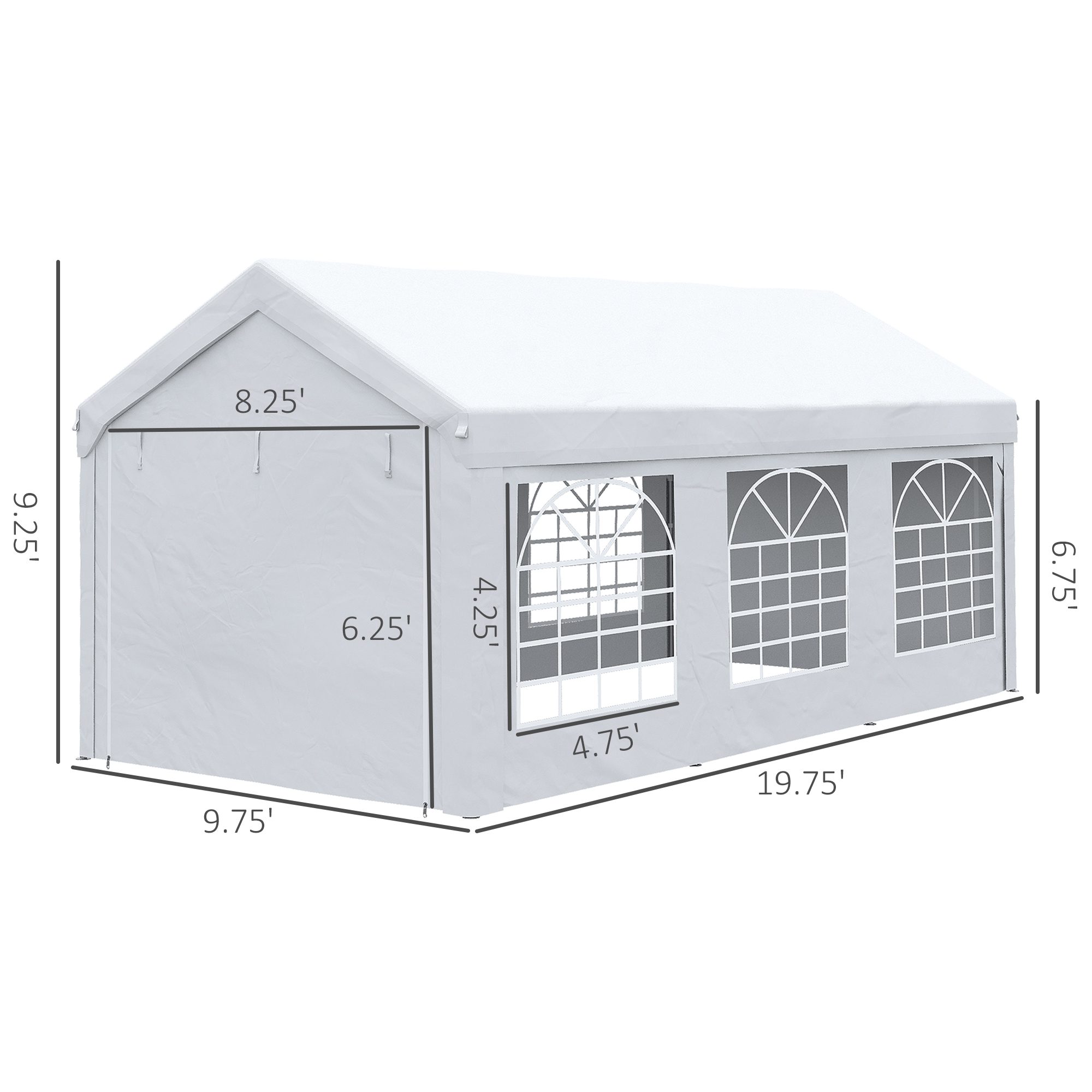 19.7' x 9.7' Heavy Duty Party Tent & Carport with Removable Sidewalls and Double Doors, Large Canopy Tent, Sun Shade Shelter, for Parties, Wedding, Outdoor Events, BBQ, White