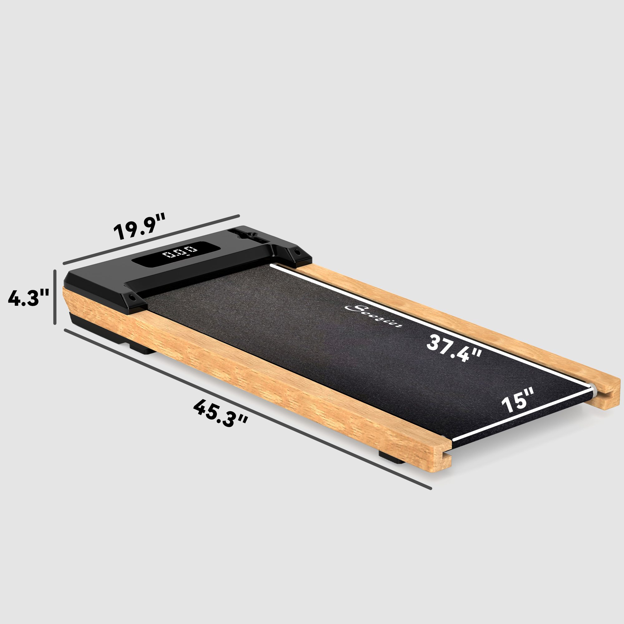 Step into your fitness journey with the under-the-desk treadmill pad, featuring a powerful 2.5HP motor for a quiet, smooth walk on an anti-slip, shock-absorbing belt. Track your progress on the sleek LED screen displaying speed, distance, and calories. Beautifully designed with natural wooden sides, this portable walking pad fits stylishly into any room and quickly moves with built-in wheels.