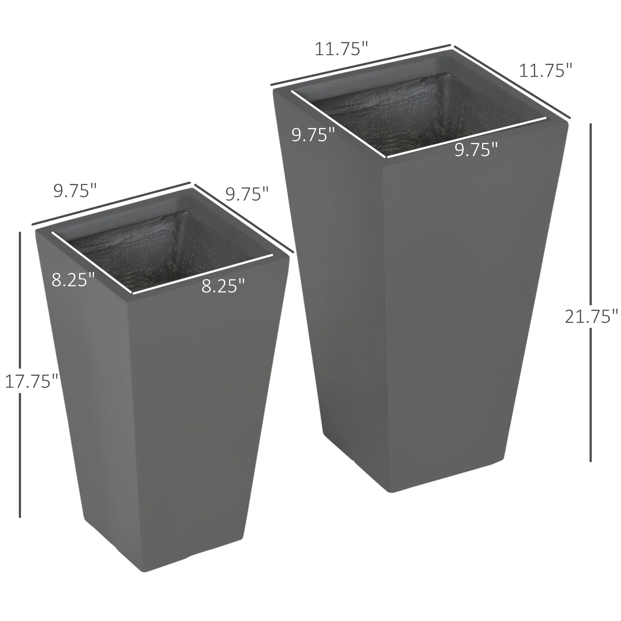 - – Inside Pot Dimensions: 9.75″ L x 9.75″ W x 20.5″ H, 8.25″ L x 8.25″ W x 16.5″ H