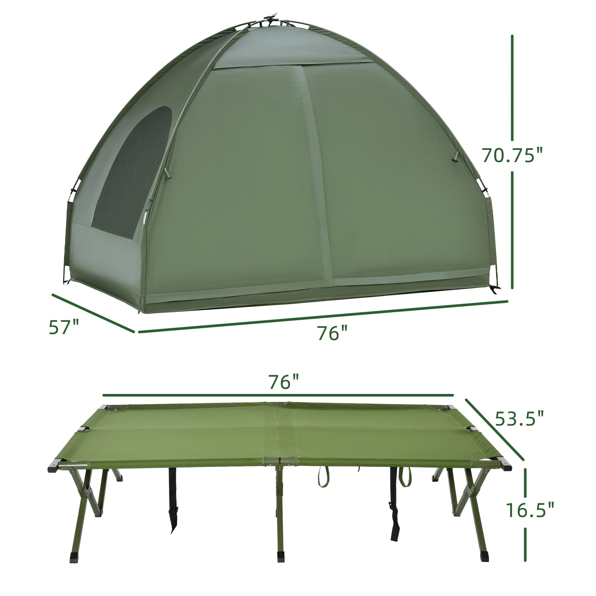 2-Person Tent Cot, 4-in-1 Elevated Camping Bed Combo with Air Mattress, Bed Cover, Foot Pump, Folding Off Ground Double Tent for Camping, Hiking, Backpacking