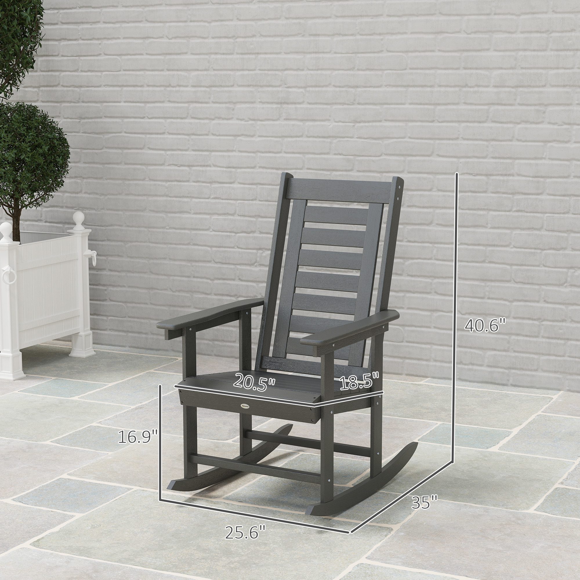 Kick back and sway the day away with the [BRAND NAME] set of two patio rocking chairs. Featuring a smooth base with a 70-110° smooth rocking range and a high-sloping back with recessed wide armrests, the outdoor rocker chair set combines comfort with leisure. The slatted porch chair makes it breathable to keep cool outside in the summer. An excellent addition to any patio, balcony, or garden, the porch rocking chair set makes relaxing effortless. Get out, get comfy, get [BRAND NAME].