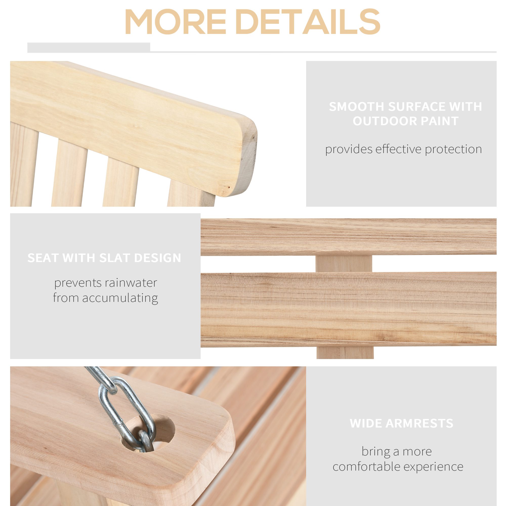 2-Seater Hanging Porch Swing Outdoor Patio Swing Chair Seat with Slatted Build and Chains, 440lbs Weight Capacity, Natural