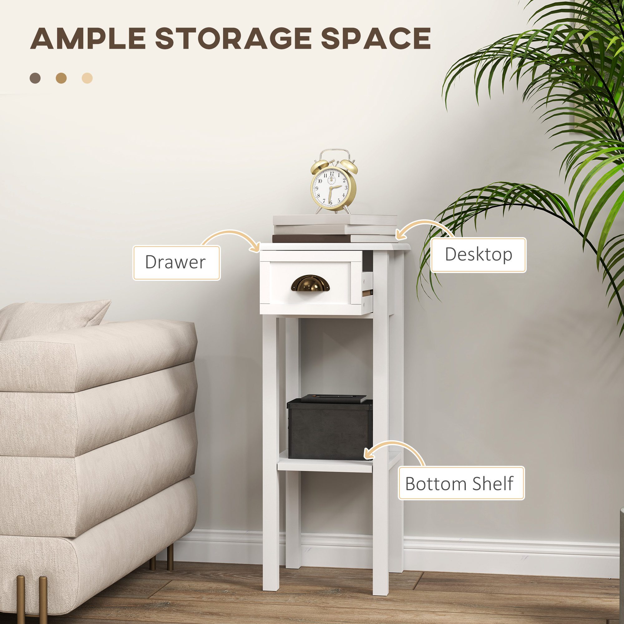 2-Tier Side Tables Set of 2 with Drawer and Shelf, 2 Pieces End Tables for Living Room and Hallway, White
