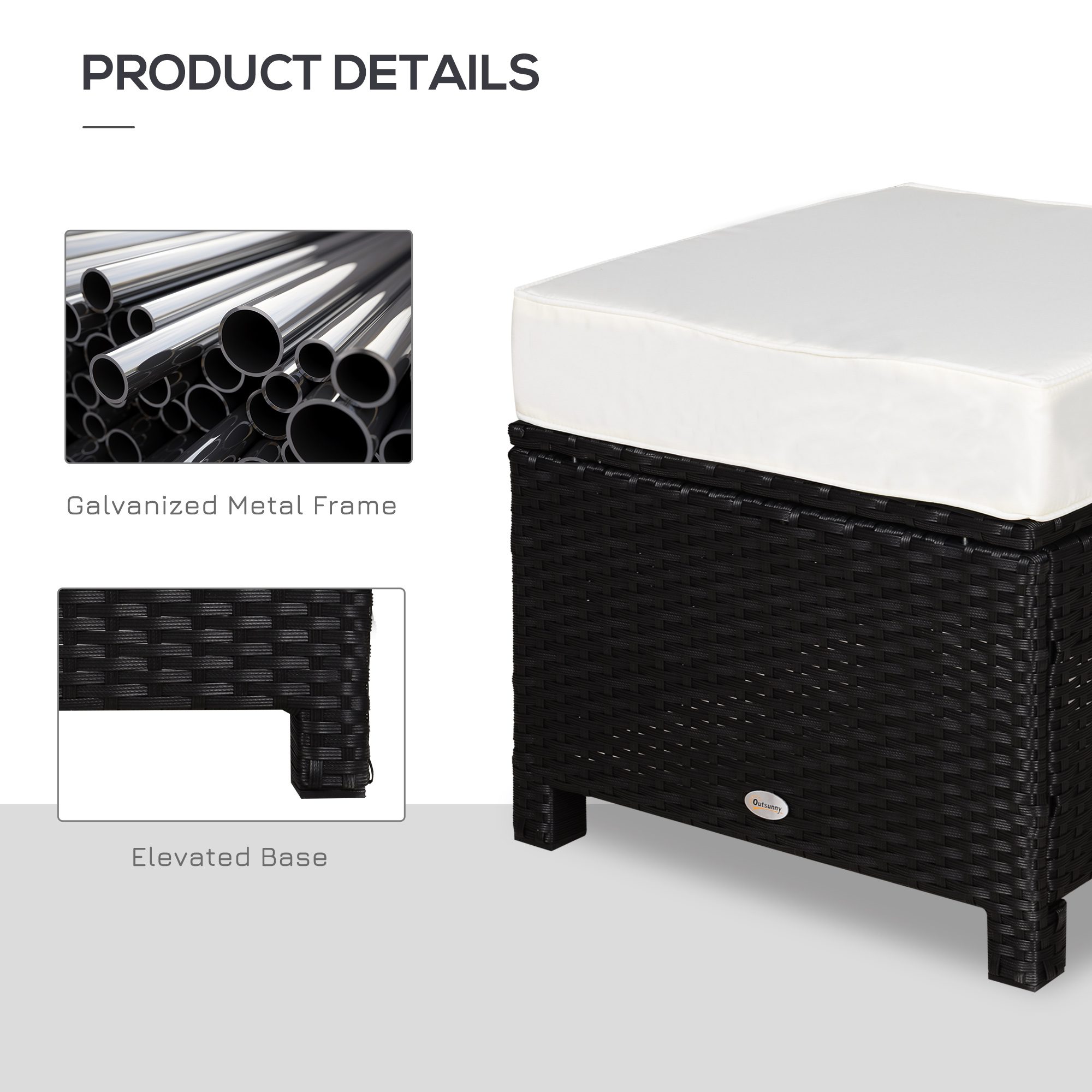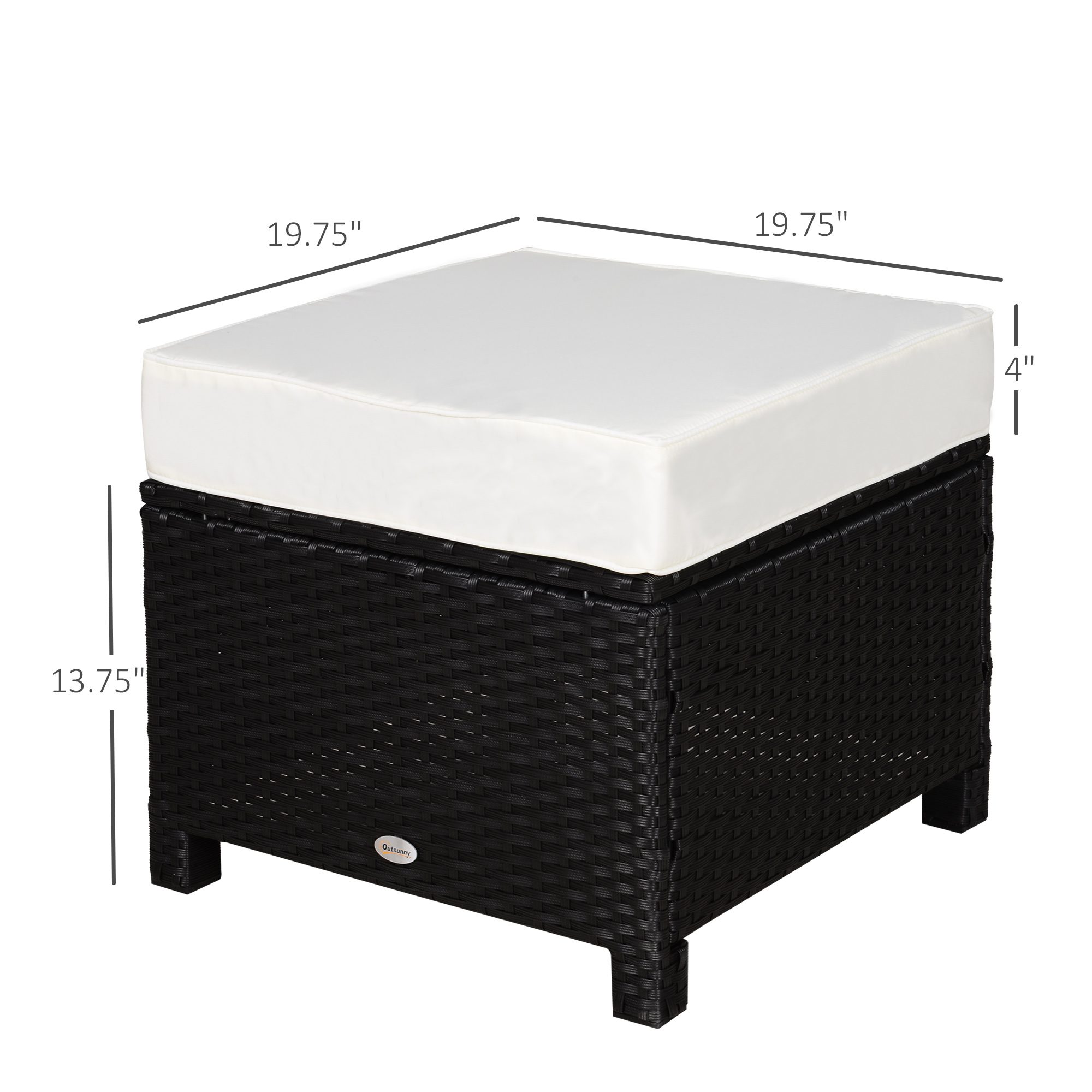 20" Patio Wicker Ottoman, Multipurpose Outdoor PE Rattan Footrest, Additional Seating, Side Table with Soft Cushion, Black, Cream White