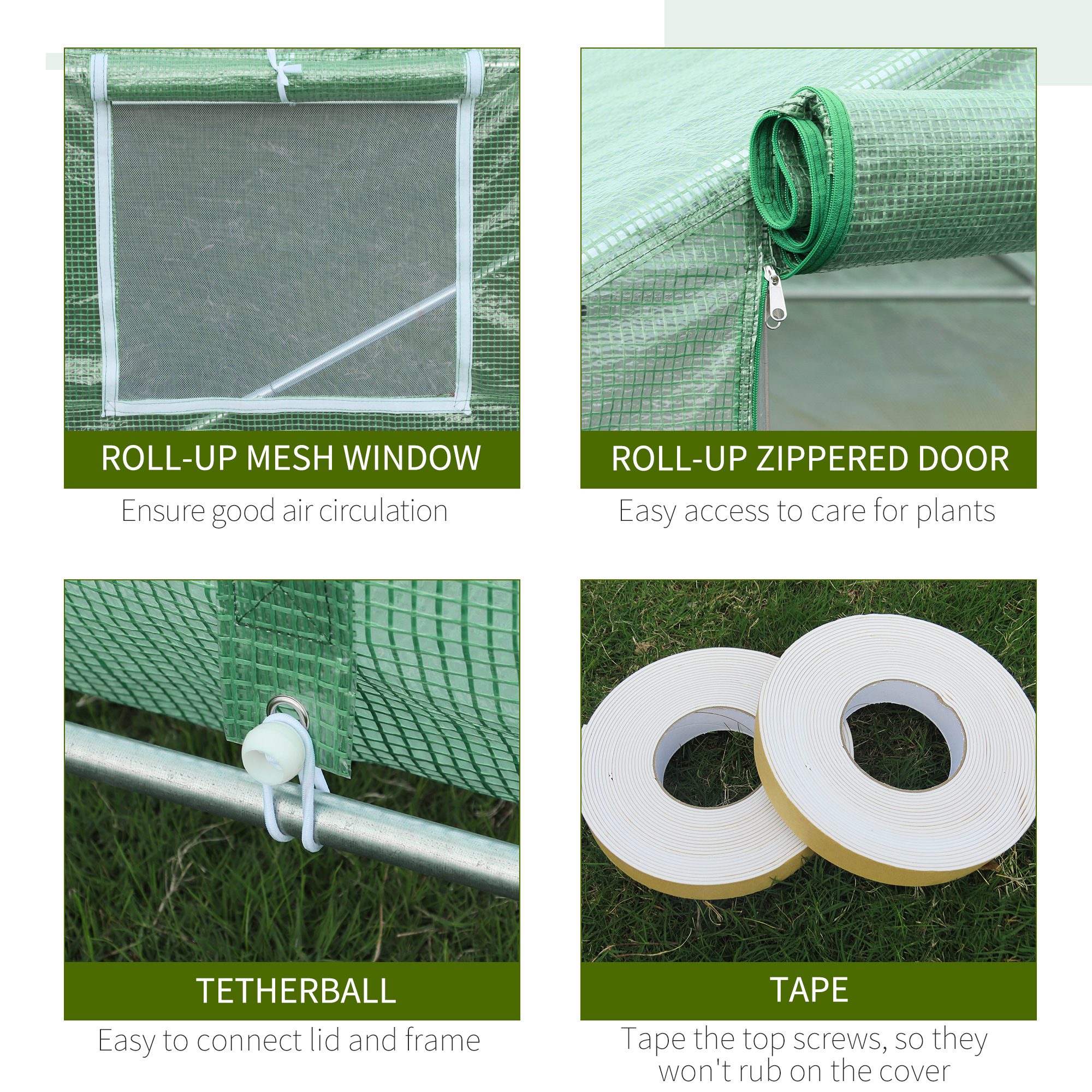 20' x 10' x 7' Walk-in Tunnel Greenhouse with Zippered Mesh Door and 8 Mesh Windows, Gardening Plant Hot House with Galvanized Steel Hoops, Green