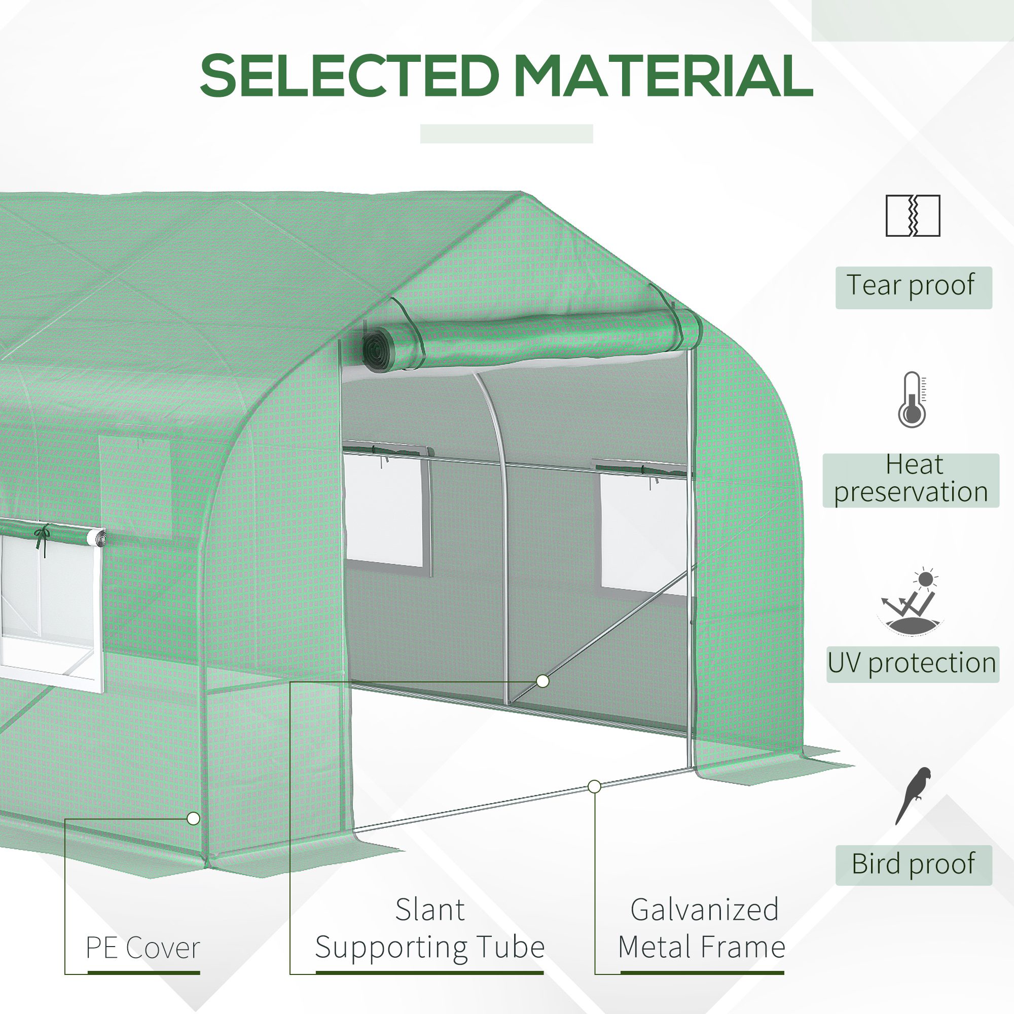 20′ x 10′ x 7′ Walk-in Tunnel Greenhouse with Zippered Mesh Door and 8 Mesh Windows, Gardening Plant Hot House with Galvanized Steel Hoops, Green