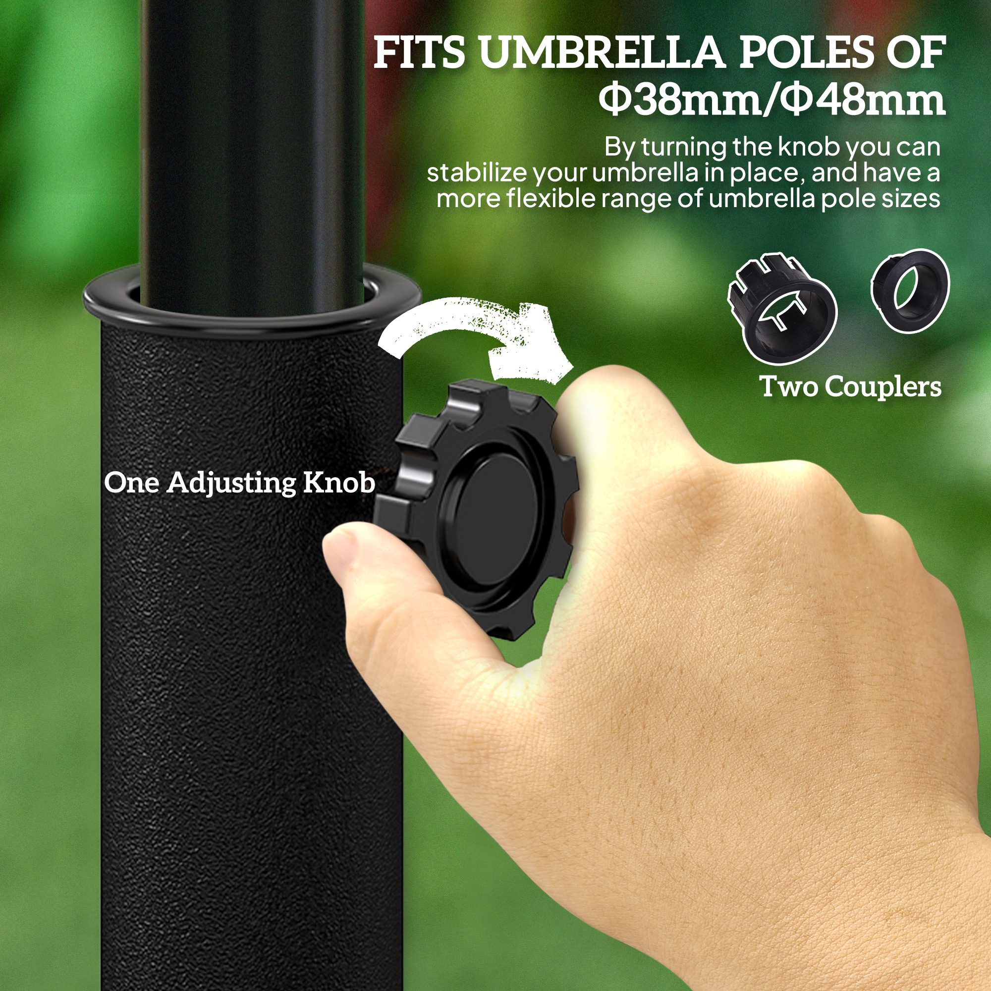 • – Suitable Umbrella Rod: Φ1.5″, Φ1.9″