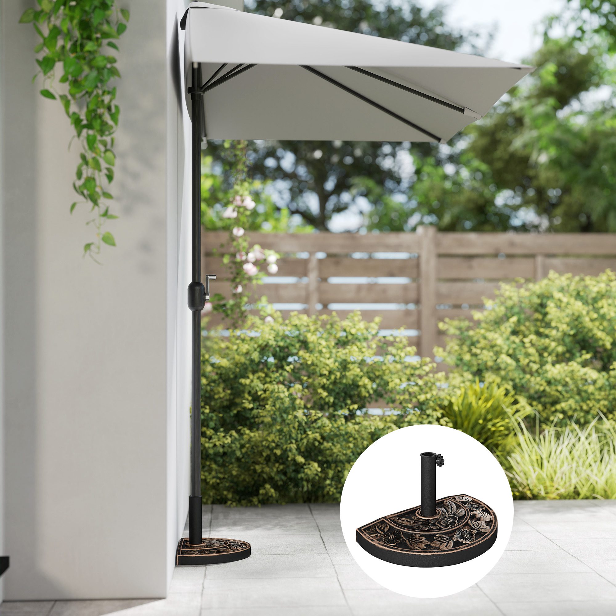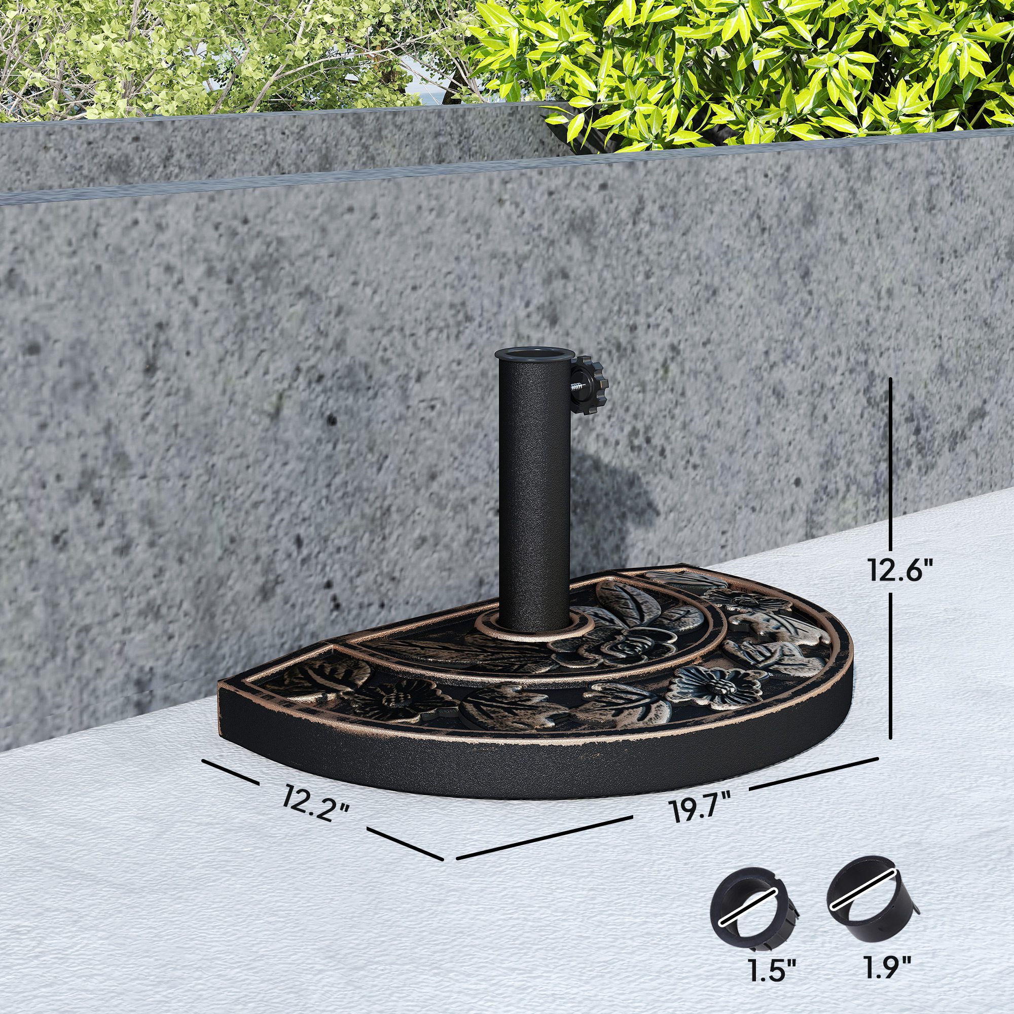 20lbs Half Round Patio Umbrella Base Outdoor Decorative Resin Parasol Stand Holder for Φ1.5", Φ1.9" Pole, for Lawn, Deck, Backyard, Garden, Bronze