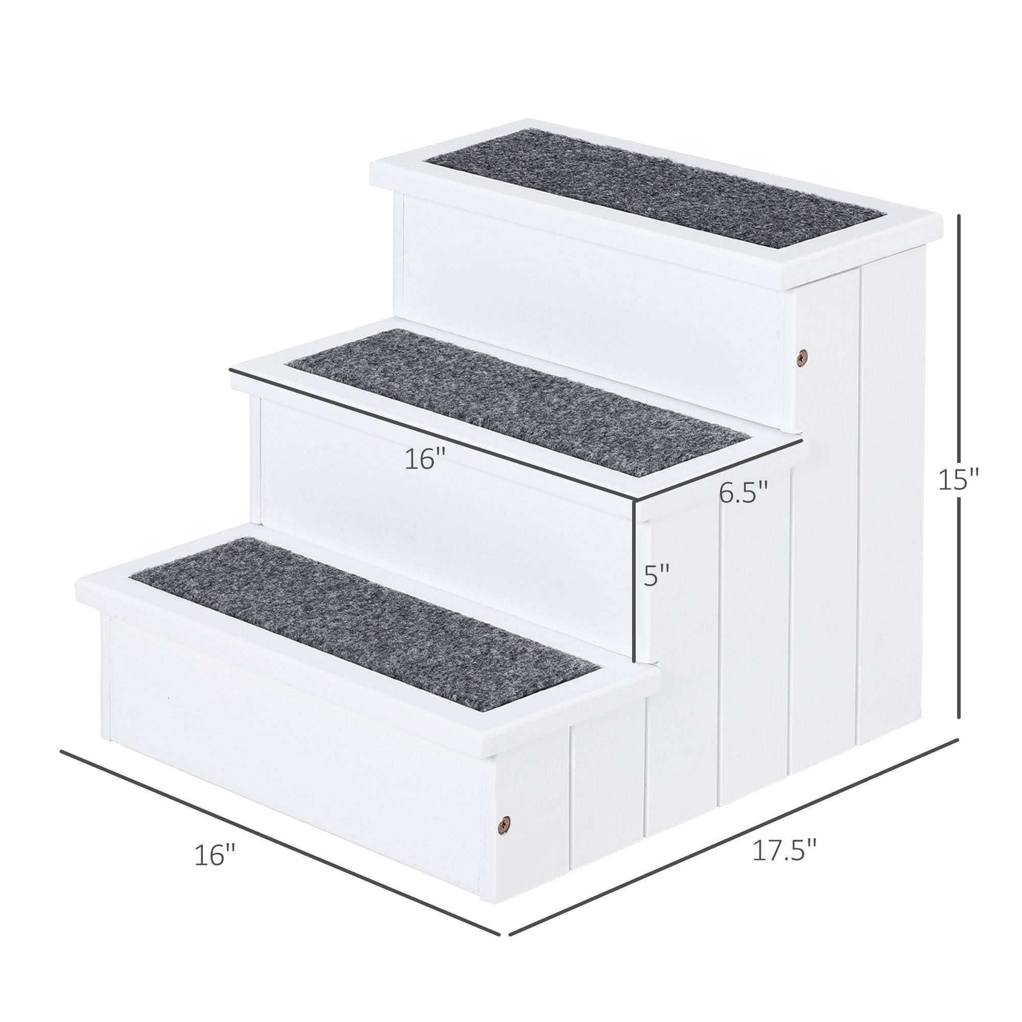 3 Step Wooden Carpeted Non Slip Pet Stairs Ramp for Cats and Small Dogs - White