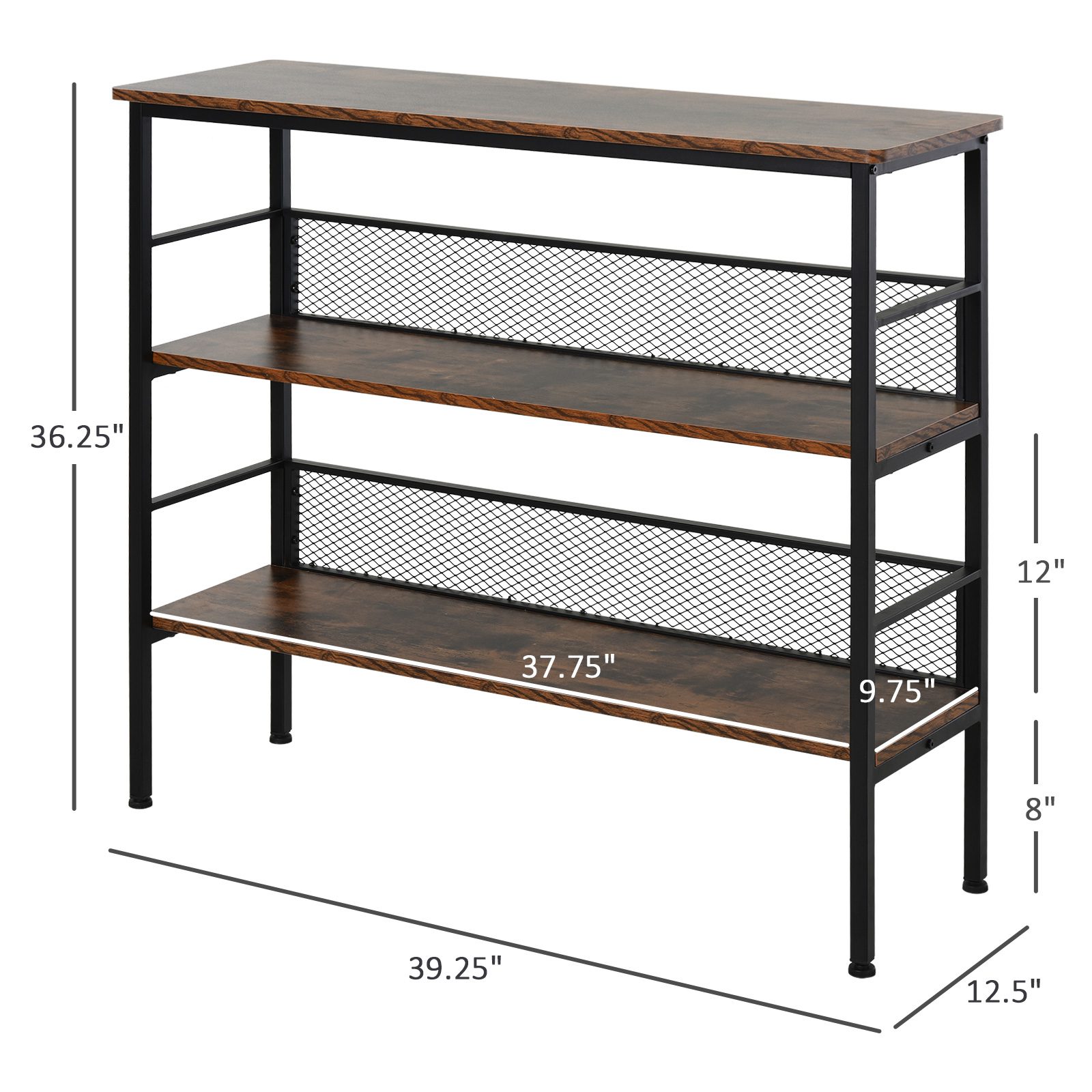 3-Tier Console Table Industrial Style Storage Metal Wooden Shelf with a Robust Multi-Functional Design & Adjustable Feet, Black