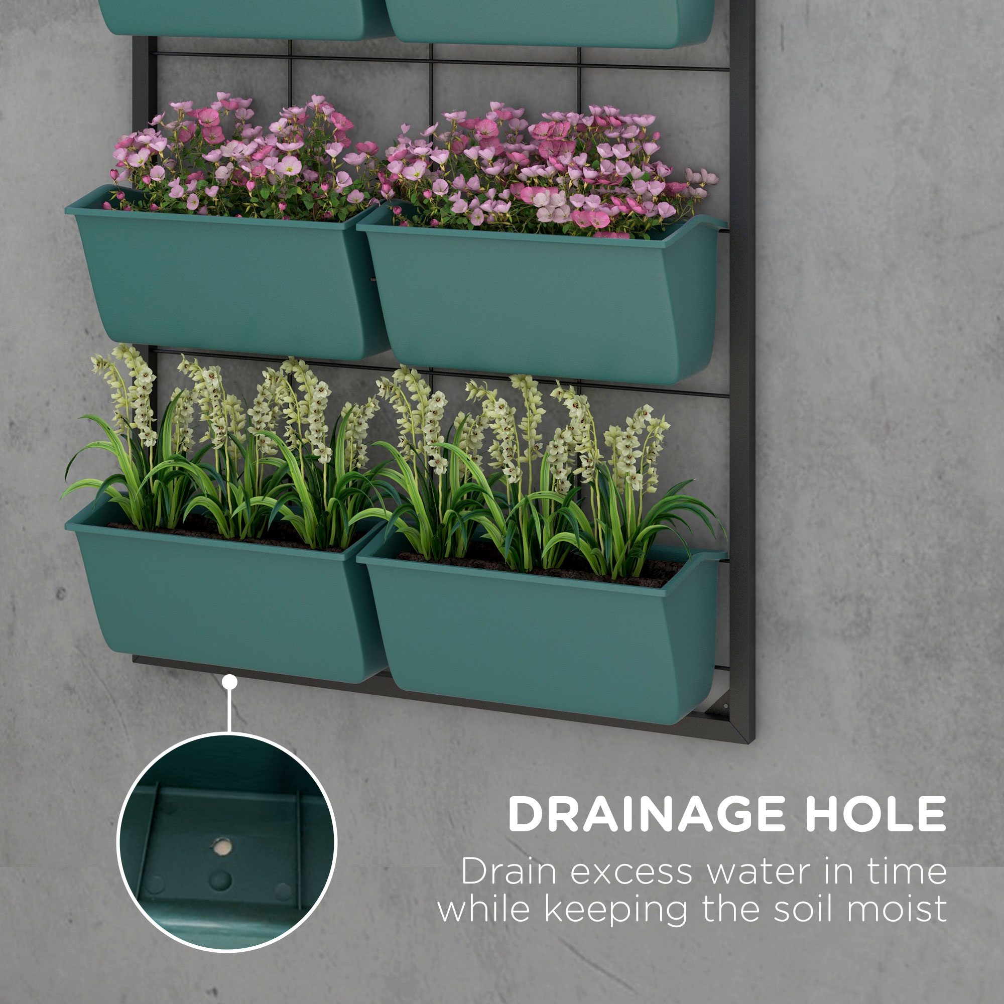 3-Tier Hanging Planter with 6 Pots for Indoor and Outdoor Use, Wall Planter, Self Draining & Wall Mounted, Green