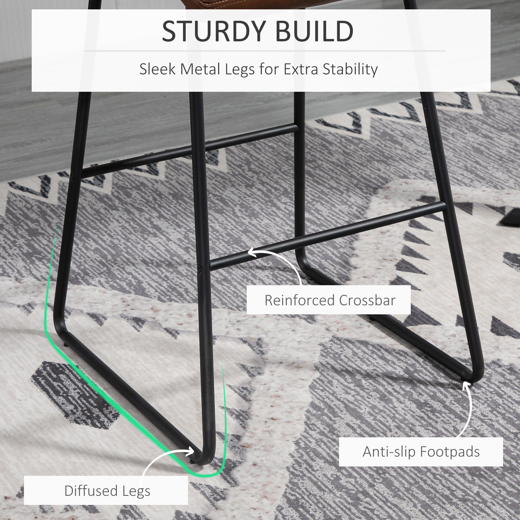 • – Materials: PU Leather, Sponge, Steel