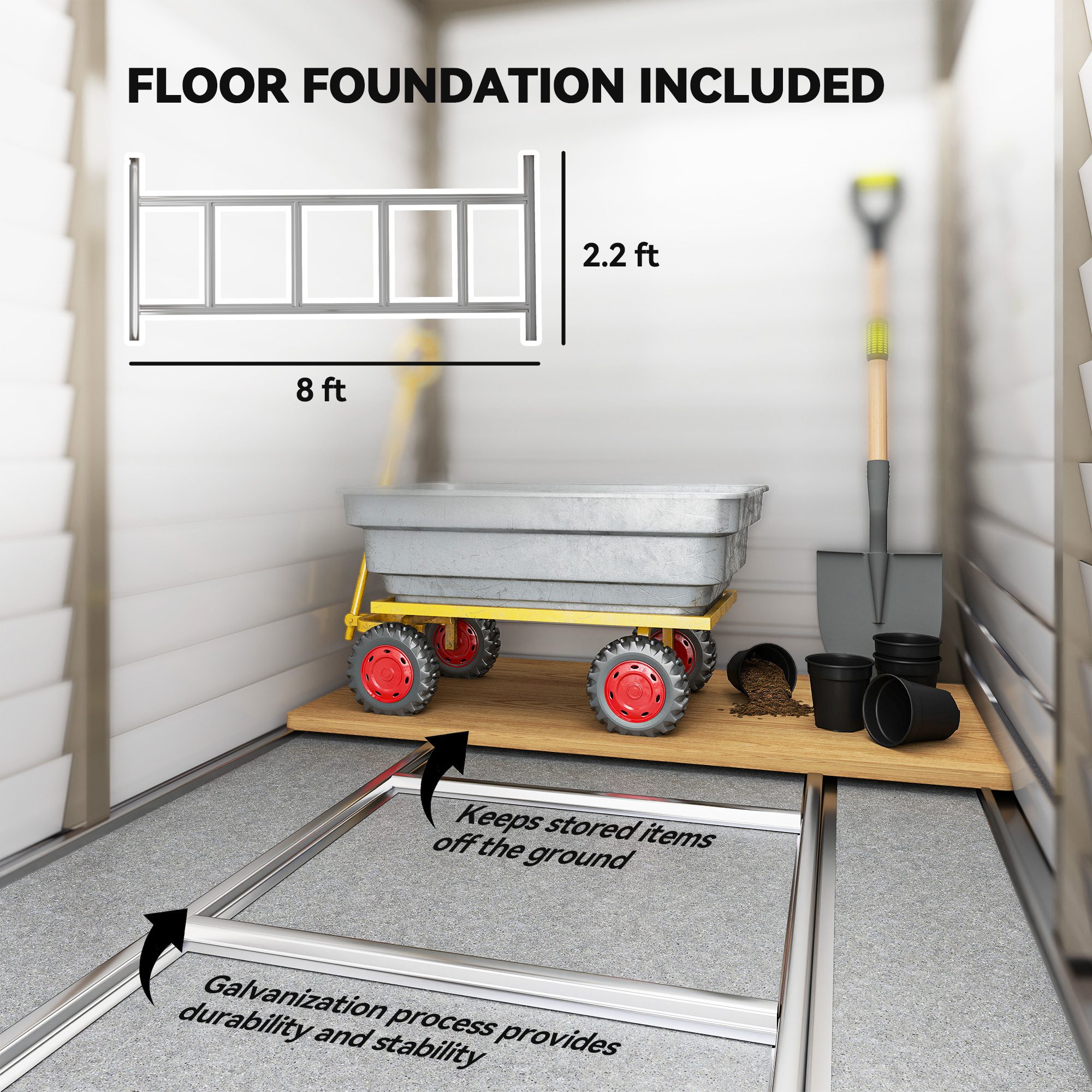 • – Galvanized steel frame is strong and water-safe