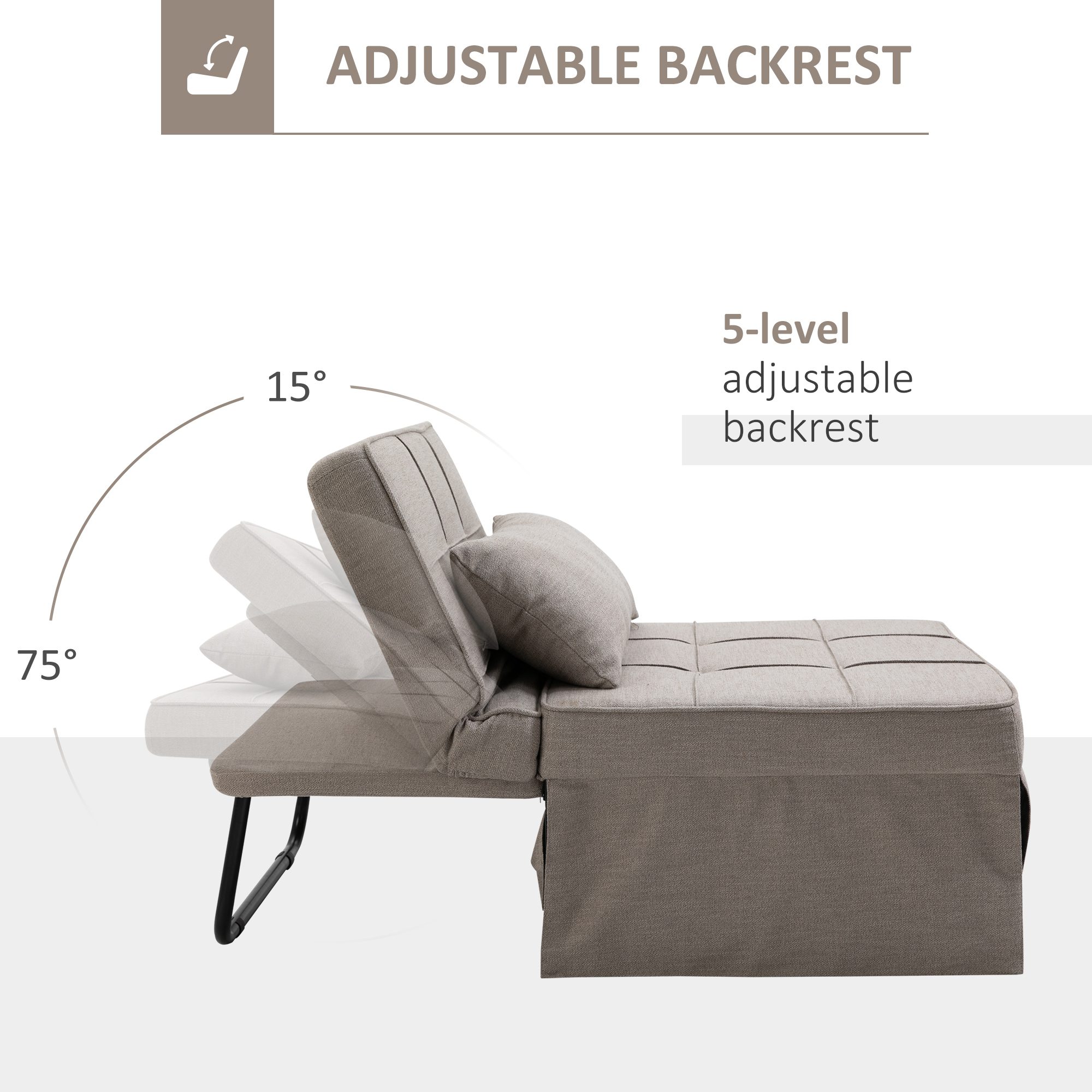 4-In-1 Design Convertible Sofa Tea Table Lounge Chair Single Bed with 5-Level Adjustable Backrest, Footstool and Metal Frame for Living Room Bedroom, Light Brown