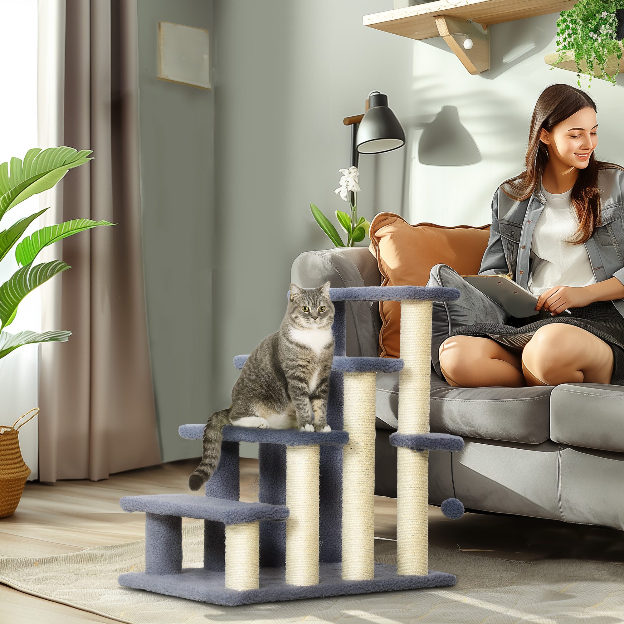 4 Levels Cat Steps with Scratching Posts for High Bed, Sofa, Gray