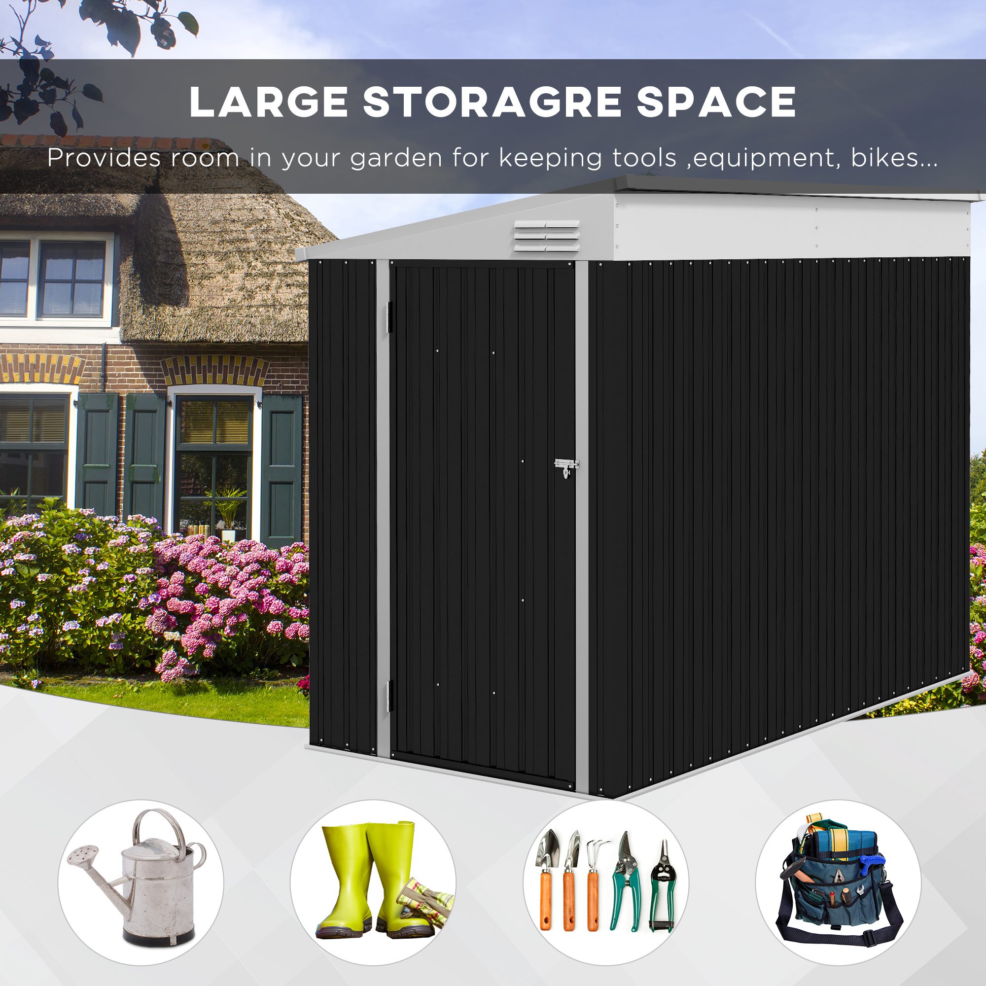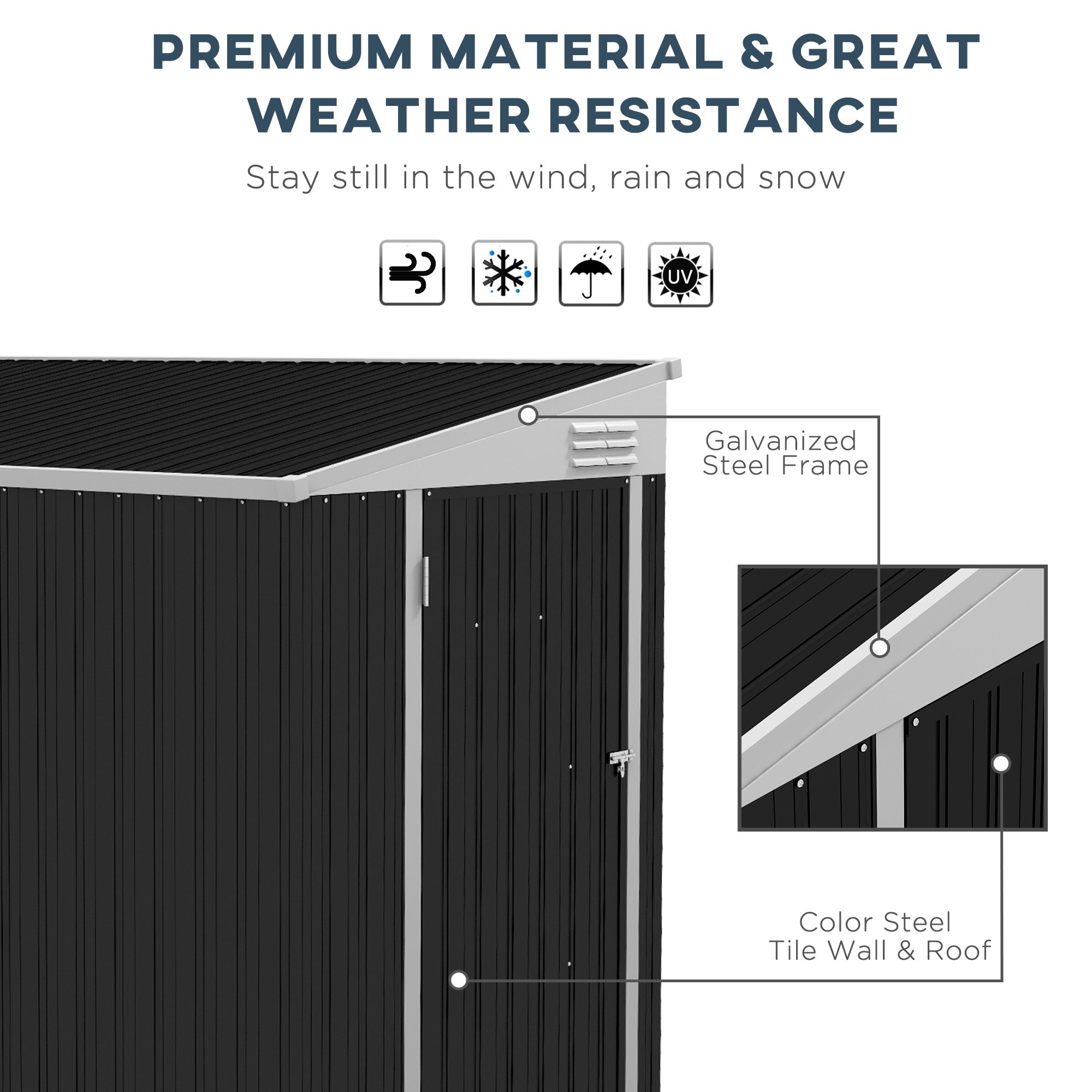 4' x 8' Lean to Garden Storage Shed, Outdoor Metal Tool House with Lockable Door Vents for Backyard Patio Lawn, Gray