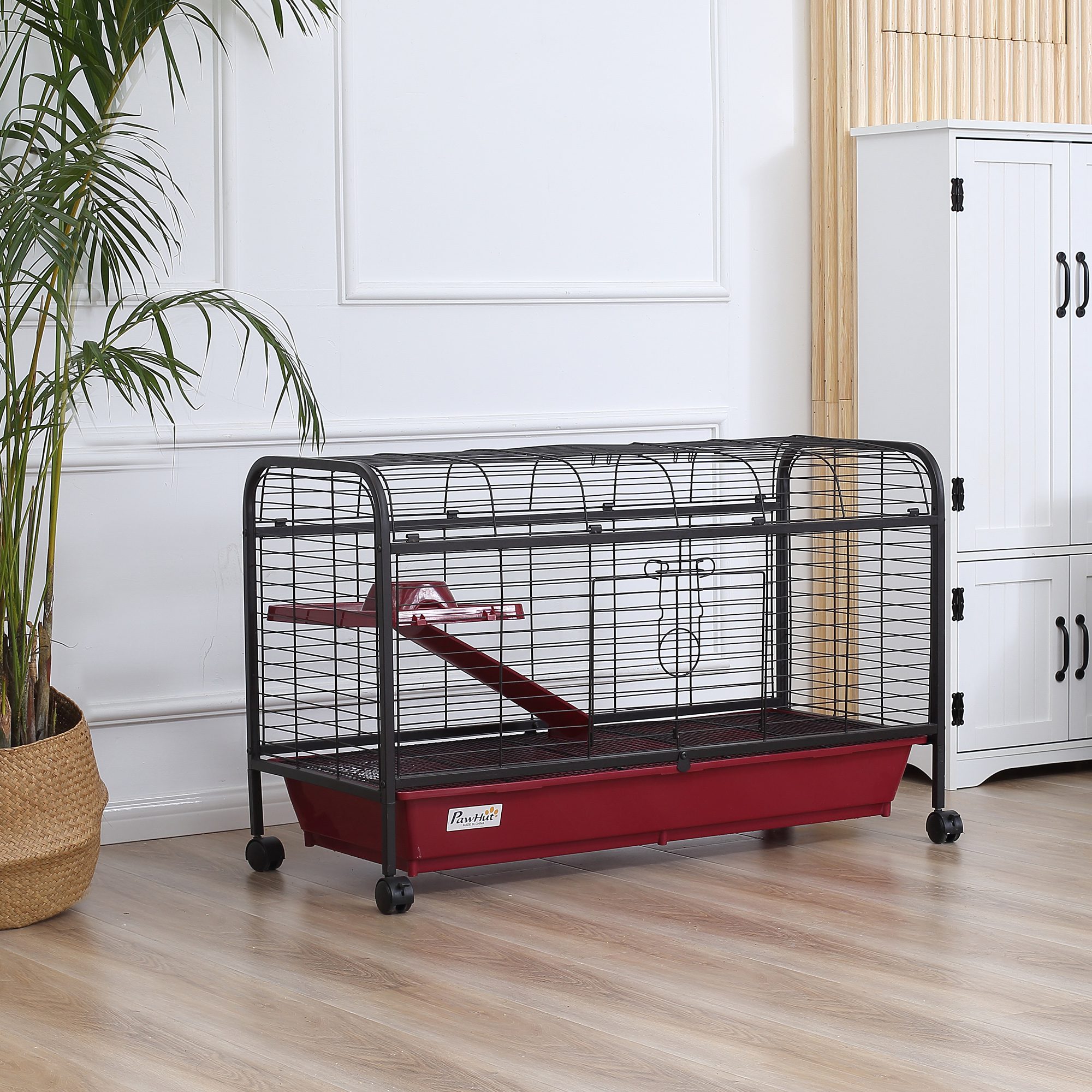 41"L Small Animal Cage, Pet Play House for Rabbit Hutch Ferret with Feeder, Rolling Wheels, Platform, Ramp