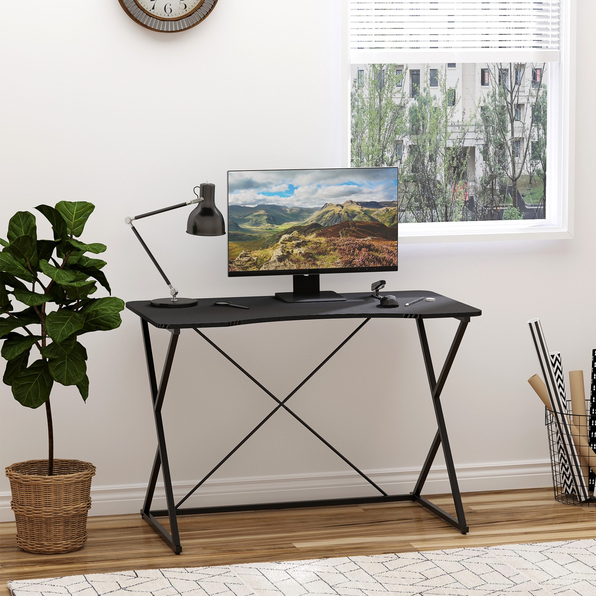 Make room for everything you need for a home office with this small space desk from [BRAND NAME]. With the writing desks’ wide tabletop, you’ll have all the room you need to hold computer components, electronics, books, and personal items in place. The desk for small spaces is stable with Z-shaped metal legs, a V-shaped metal bar, and a quality engineered board. Set yourself up to have a successful work-from-home life with [BRAND NAME]’s small desk.