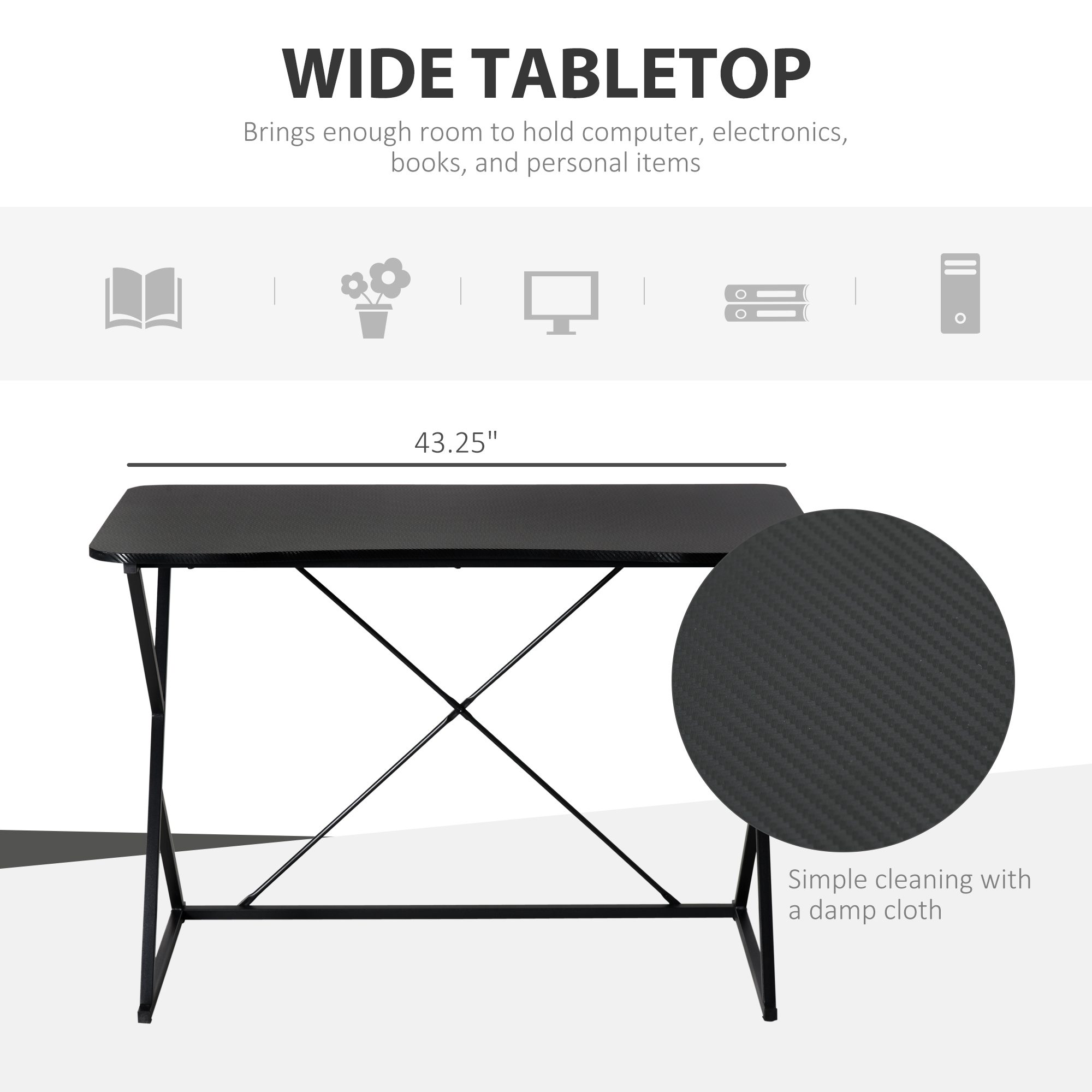 - – Wide top brings enough room to hold computer, books, and personal items