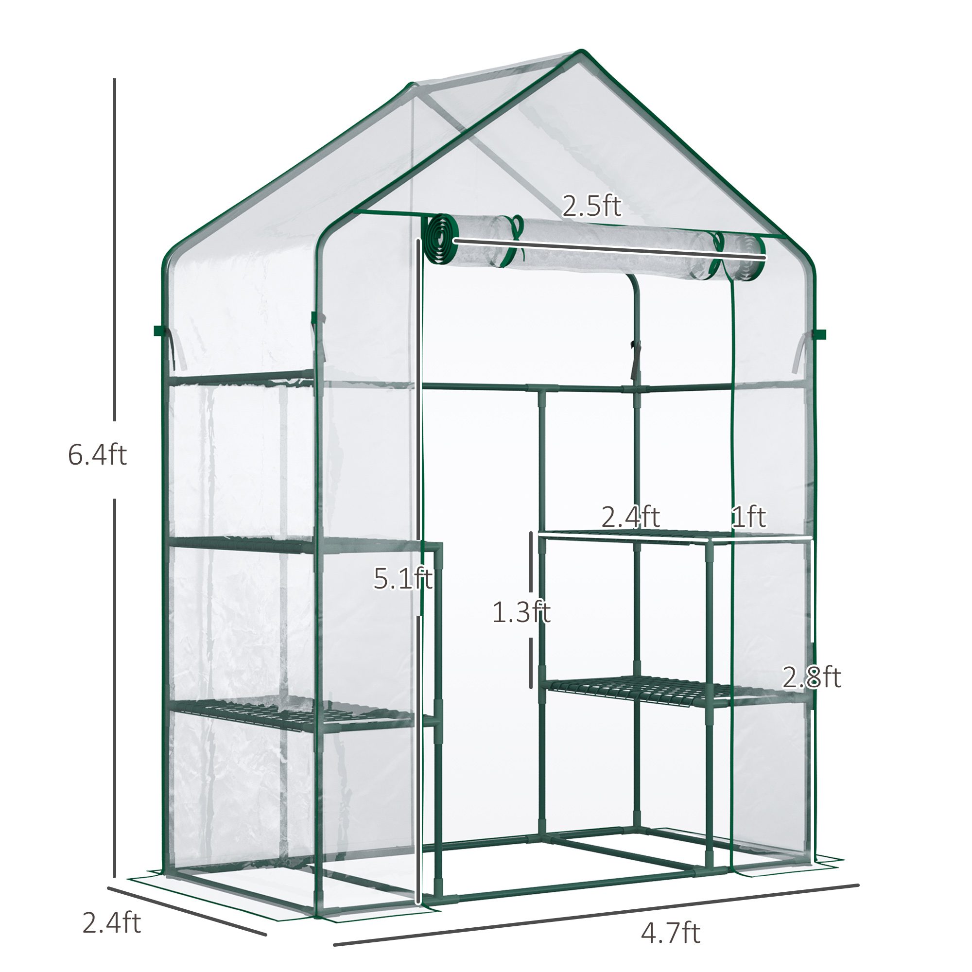 5′ x 2.5′ x 6.5′ Mini Walk-in Greenhouse Kit, Portable Green House with 3 Tier Shelves, Roll-Up Door, and Weatherized Plastic Cover for Backyard Garden, Clear