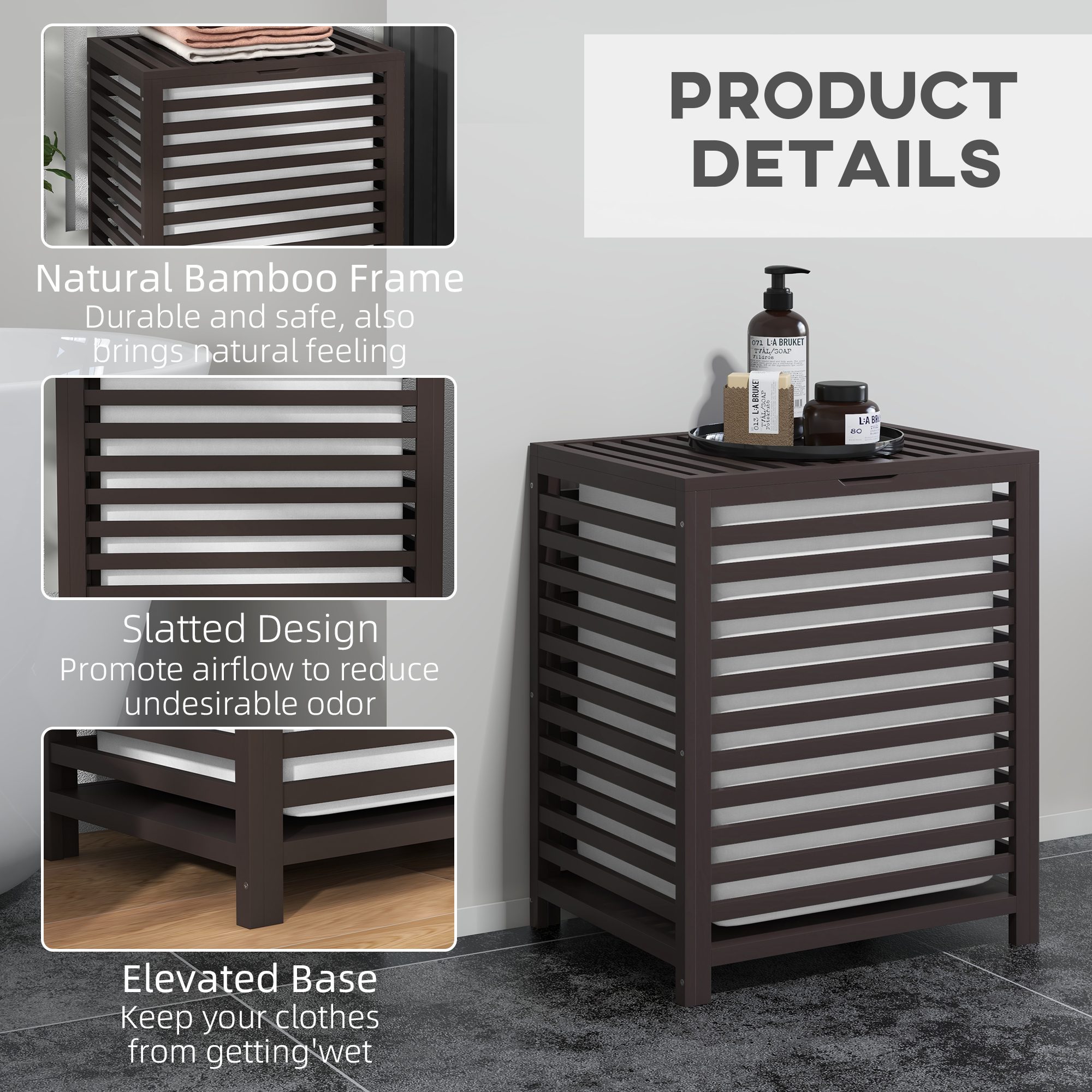 55 L Bamboo Laundry Basket with Lid, Cloth Hamper with Removable Liner Bag, 19.75 x 14.25 x 23.5 Inches, Coffee