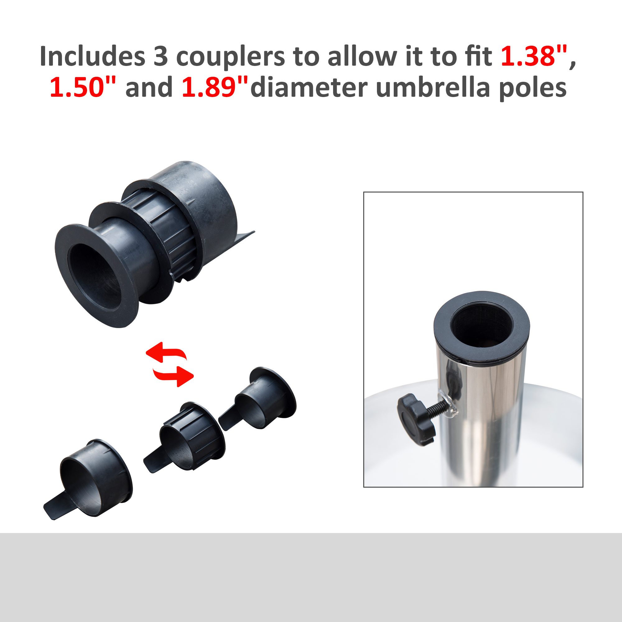 55lb Round Stainless Steel Outdoor Patio Umbrella Stand Base with Heavy Cement Bottom & Mirror Finish