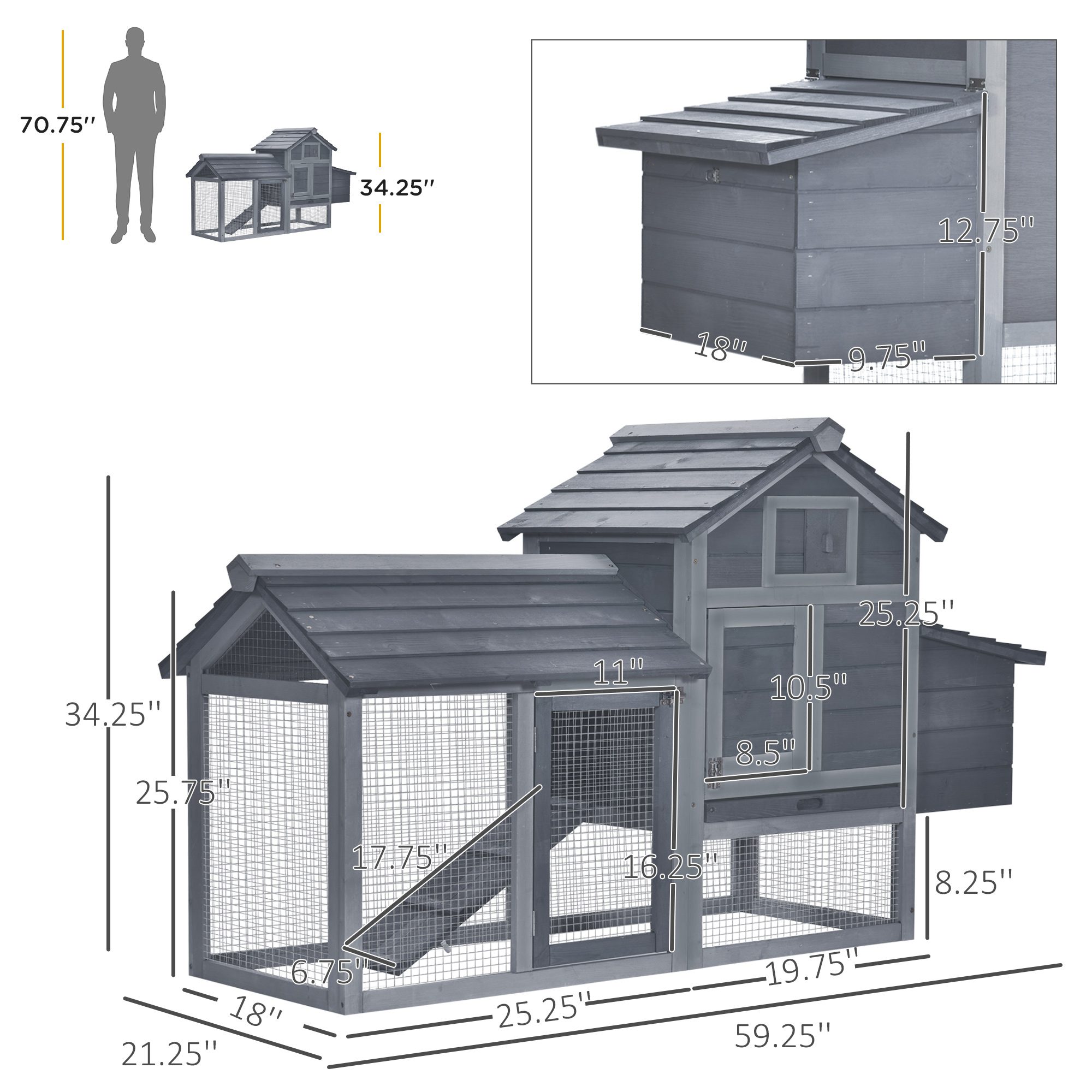 • – House Dimensions: 19.75″ L x 18″ W x 25.25″ H