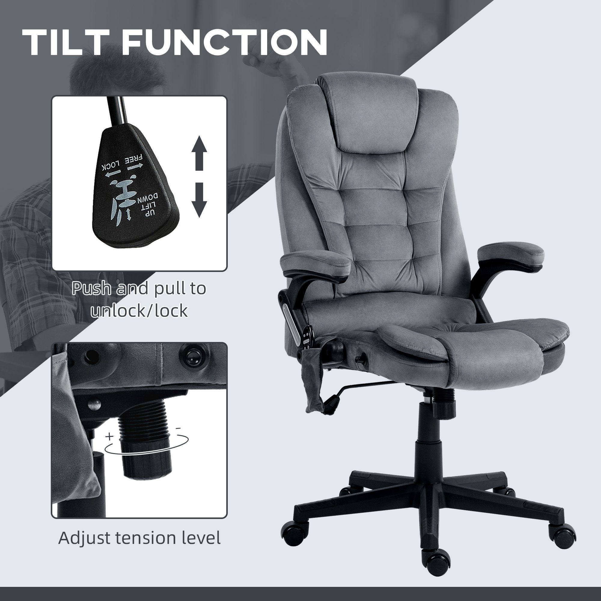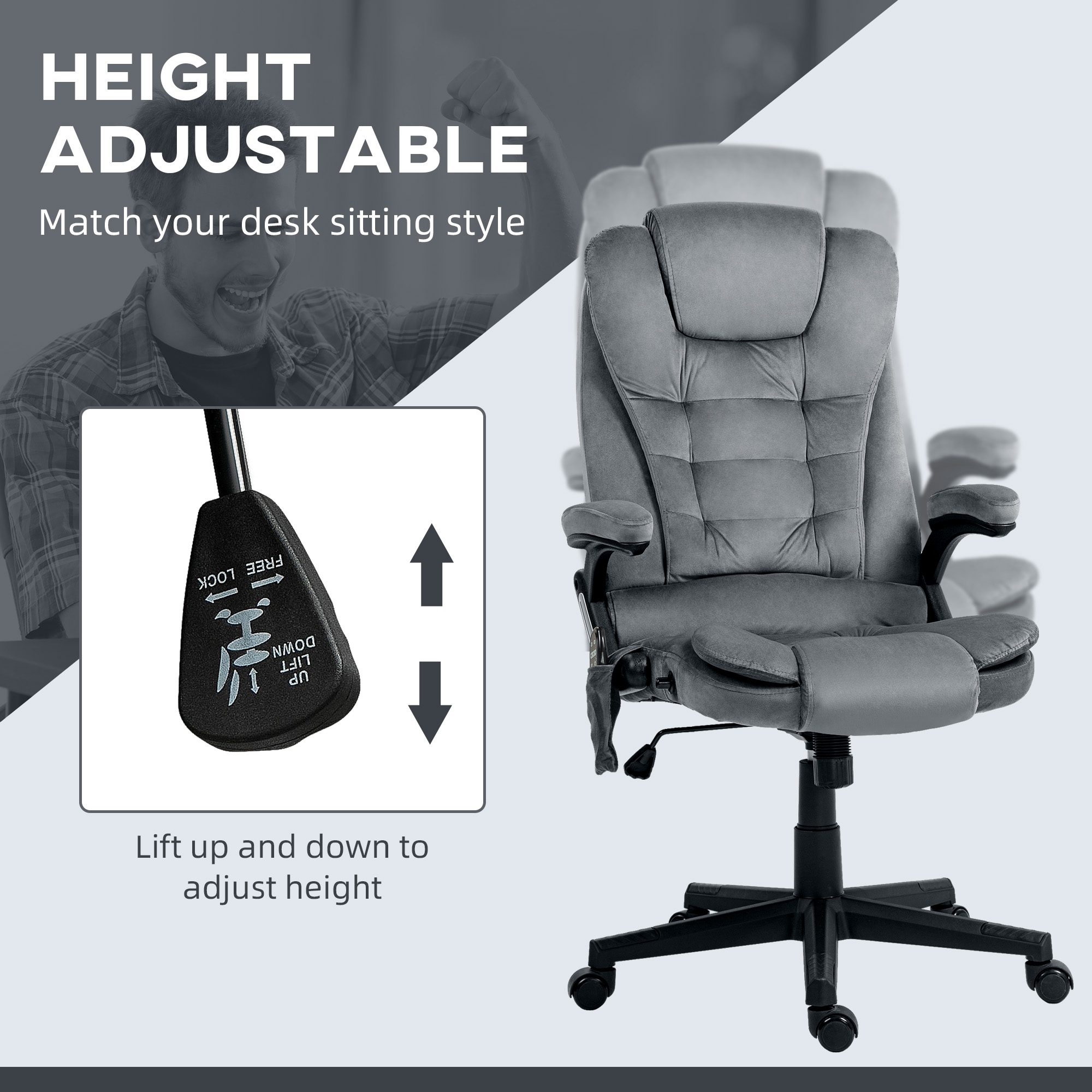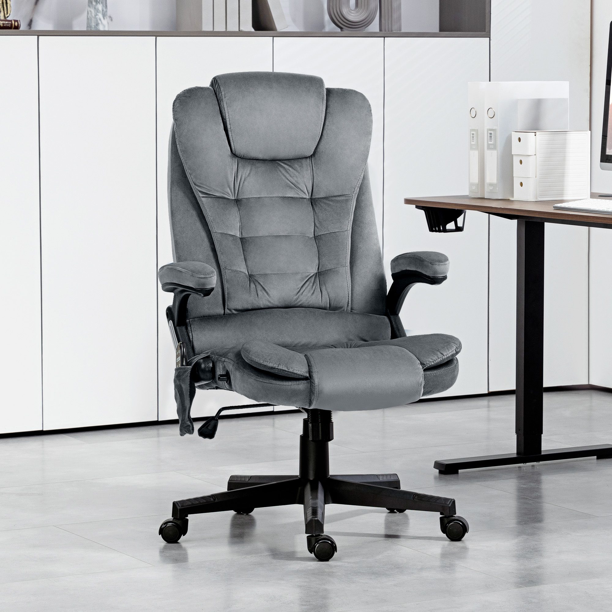 6 Point Executive Office Chair with Heat, Velvet High Back Vibrating Massage Office Chair, Dark Gray