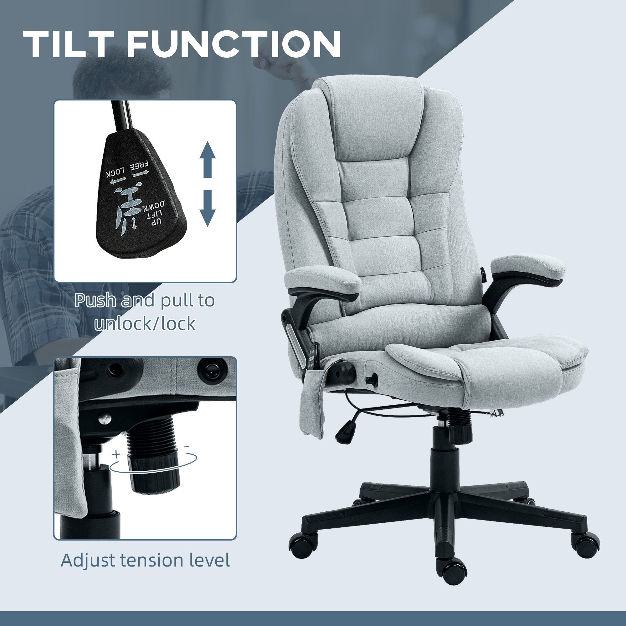 6 Point Vibrating Massage Office Chair with Heat, Linen High Back Massage Desk Chair with Reclining Backrest, Light Gray