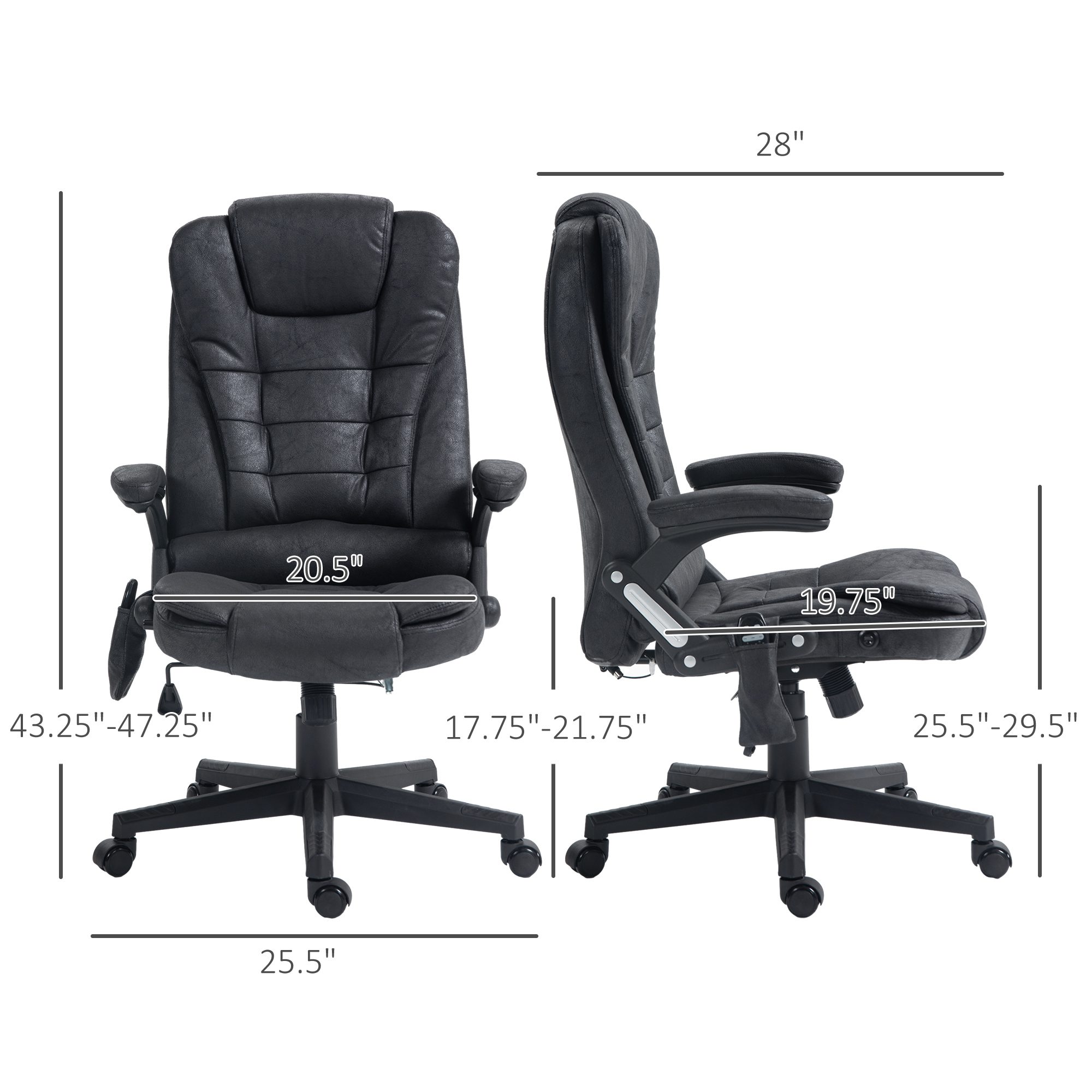 6 Point Vibrating Massage Office Chair with Heat, Microfiber High Back Executive Office Chair with Reclining Backrest, Padded Armrests and Remote, Black