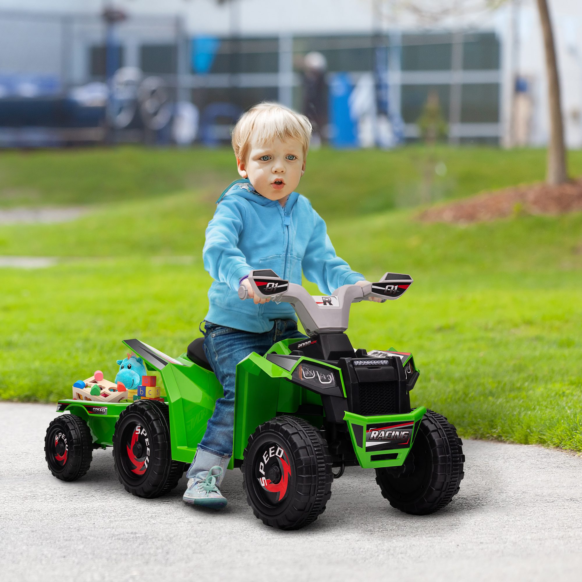 Ignite the spirit of adventure with an toddler ATV. Crafted for young explorers, this quad promises a thrilling and safe ride, enhancing motor skills and confidence. Unleash the explorer within; this model has an added back trailer for fun and utility. Watch your child’s face light up as they conquer terrain, fostering independence and a sense of discovery. Elevate outdoor play with an electric ATV, and let the adventures begin.