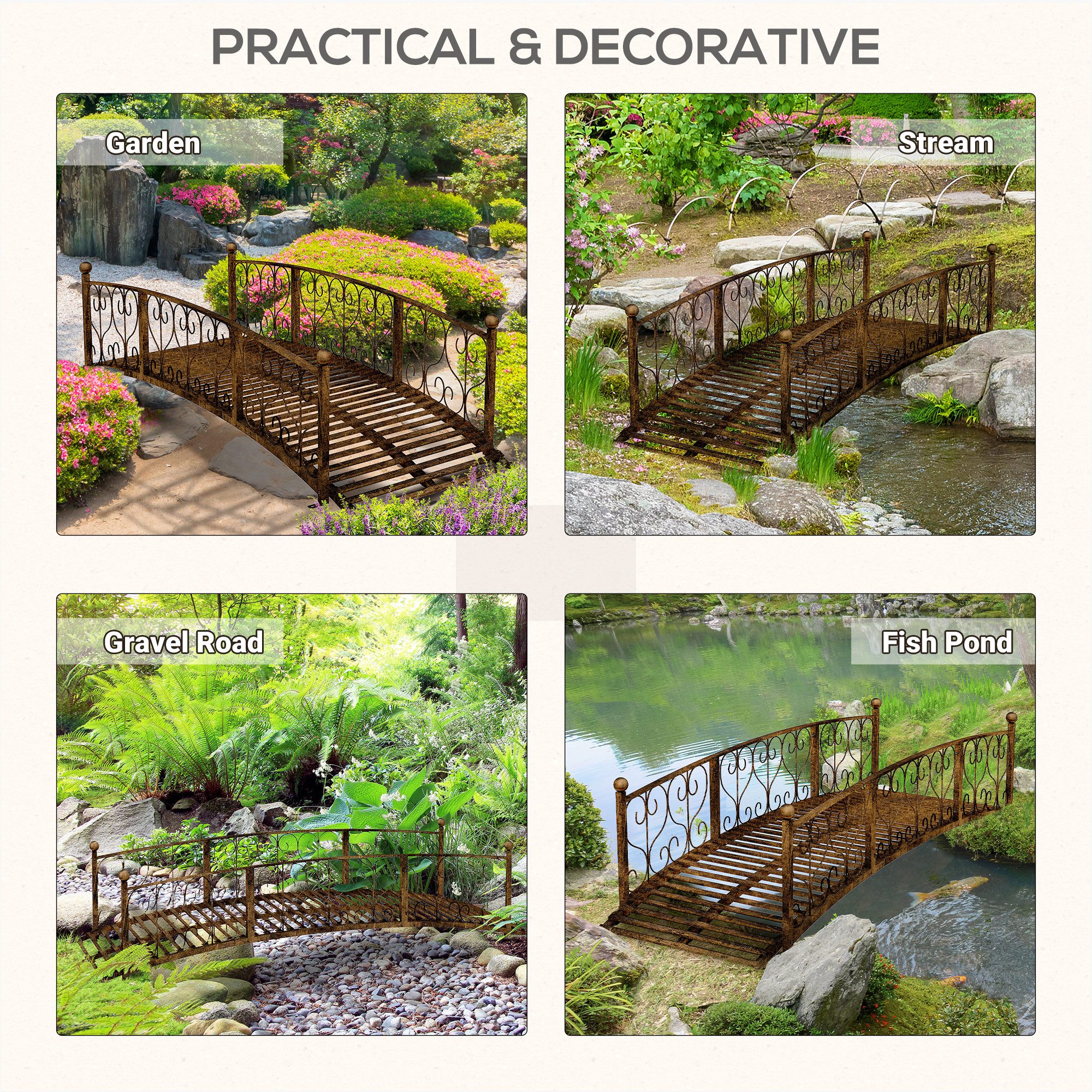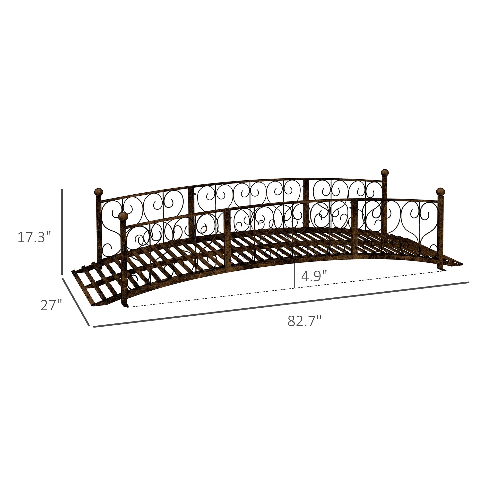 7' Metal Arch Garden Bridge Arc Footbridge with Side Railings Decorative Scrollwork, Bronze