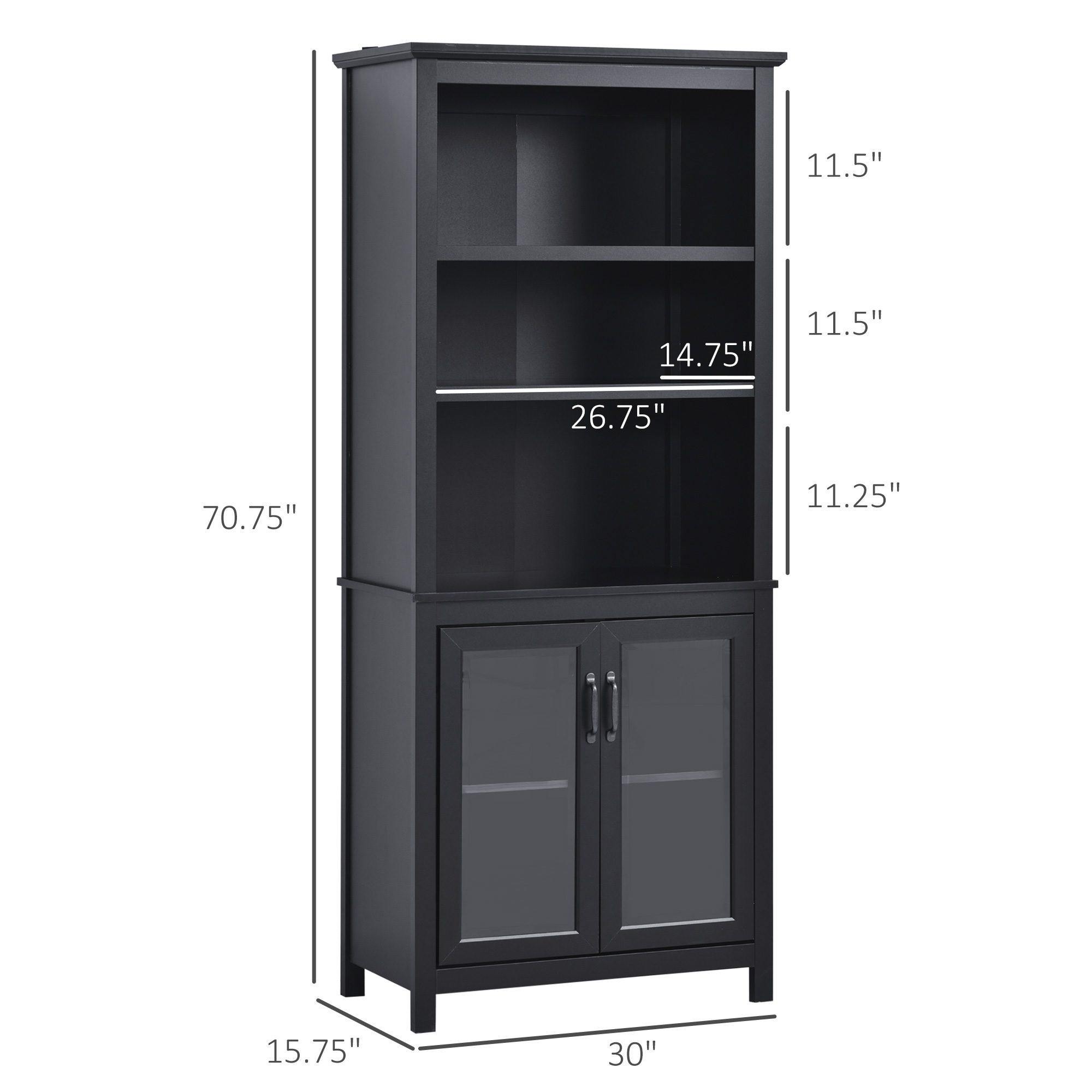 71″ Bookcase Storage Hutch Cabinet with Adjustable Shelves and Glass Doors for Home Office, Kitchen, Living Room, Black