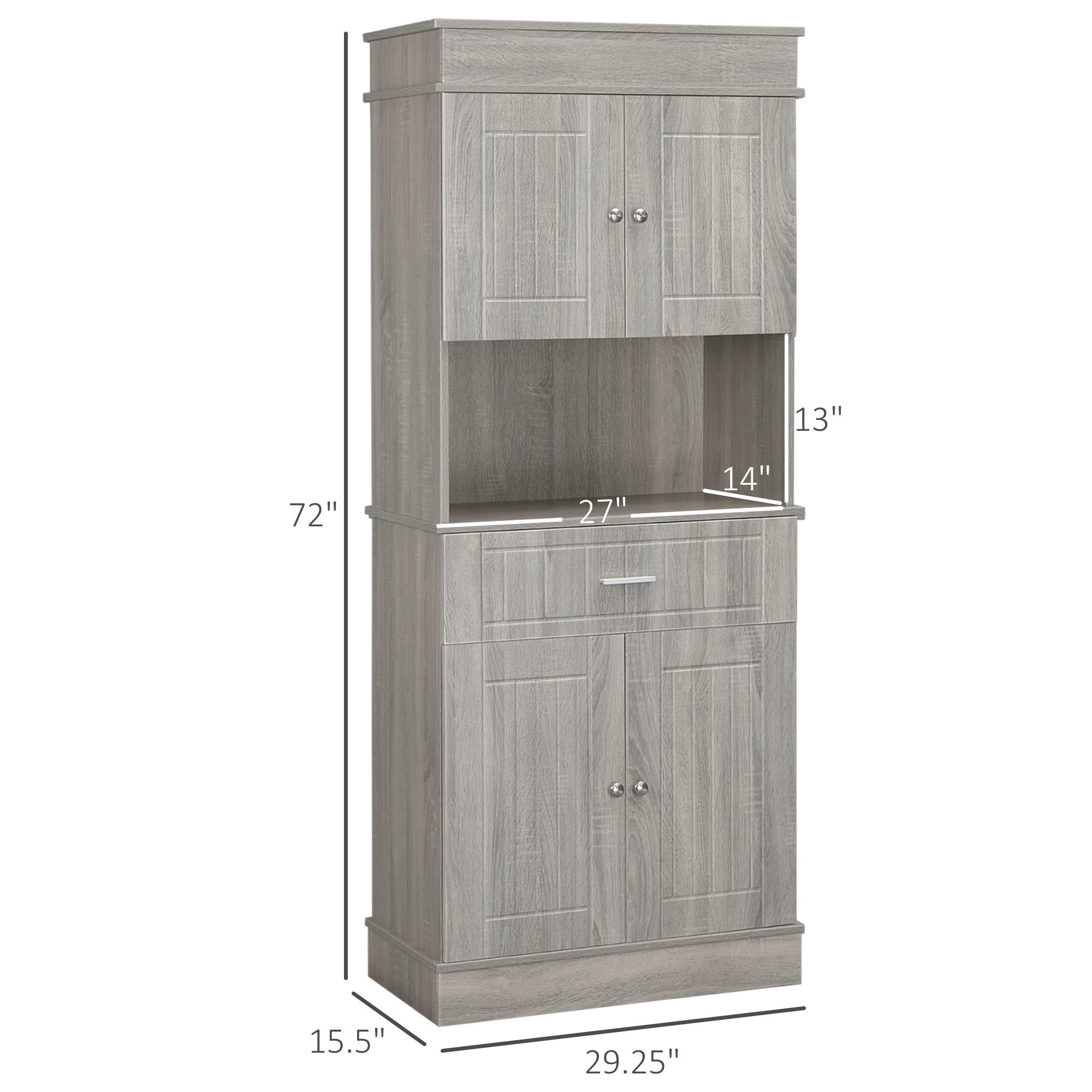 72″ Kitchen Buffet with Hutch, Freestanding Pantry Cabinet with Utility Drawer, 2 Door Cabinets, Adjustable Shelves and Countertop, Gray Wood Grain