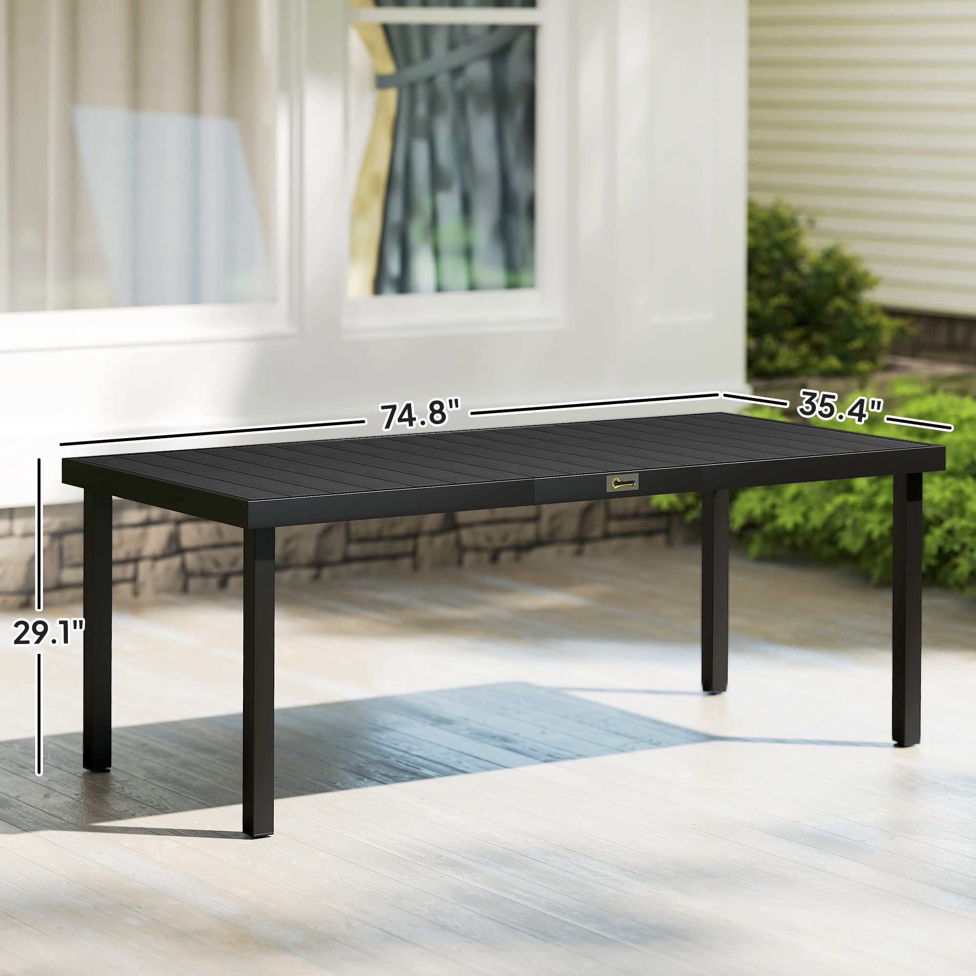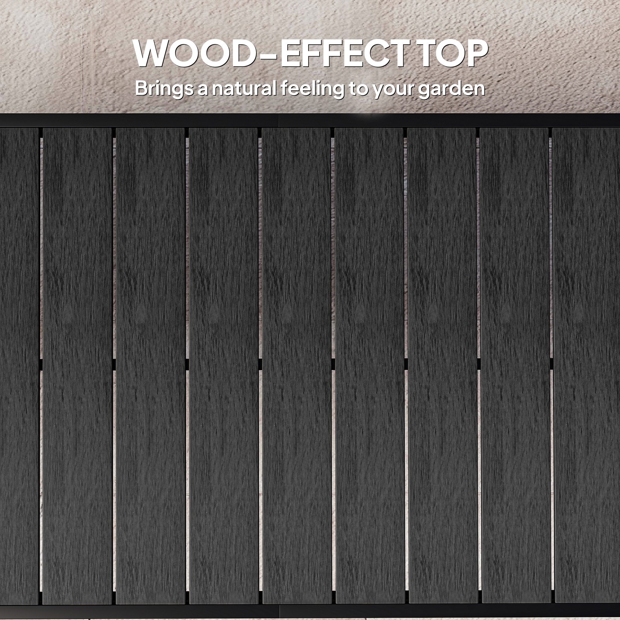 Create a simple yet inviting dining space on any deck or patio with this charming outdoor dining table from [BRAND NAME]. The aluminum frame with non-slip foot pads is stable and designed to last for years. Featuring a wood-like slat tabletop to bring a natural feeling to your patio. Add enduring beauty, style and grace with this essential part for any outdoor living space.