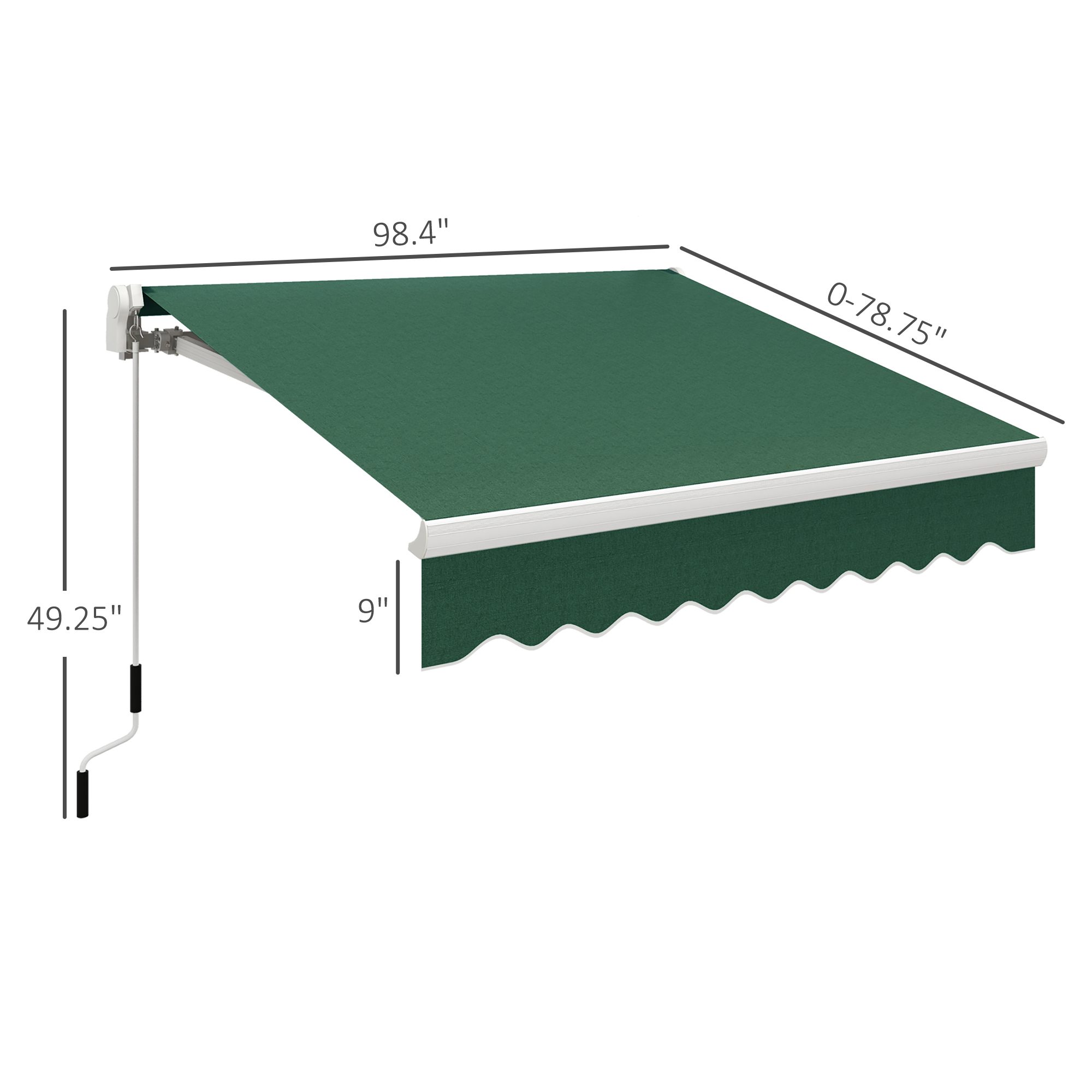 8' x 6.6' Patio Retractable Awning, Manual Exterior Sun Shade Deck Window Cover, Green