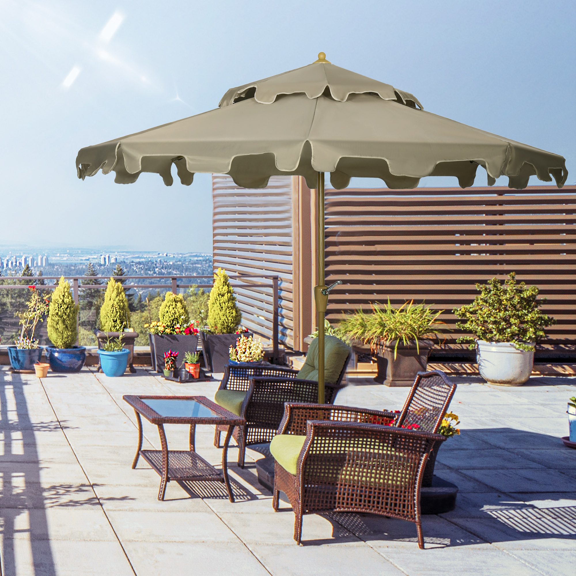 • – Ruffled outdoor patio umbrella to provide shade and protect you from the sun