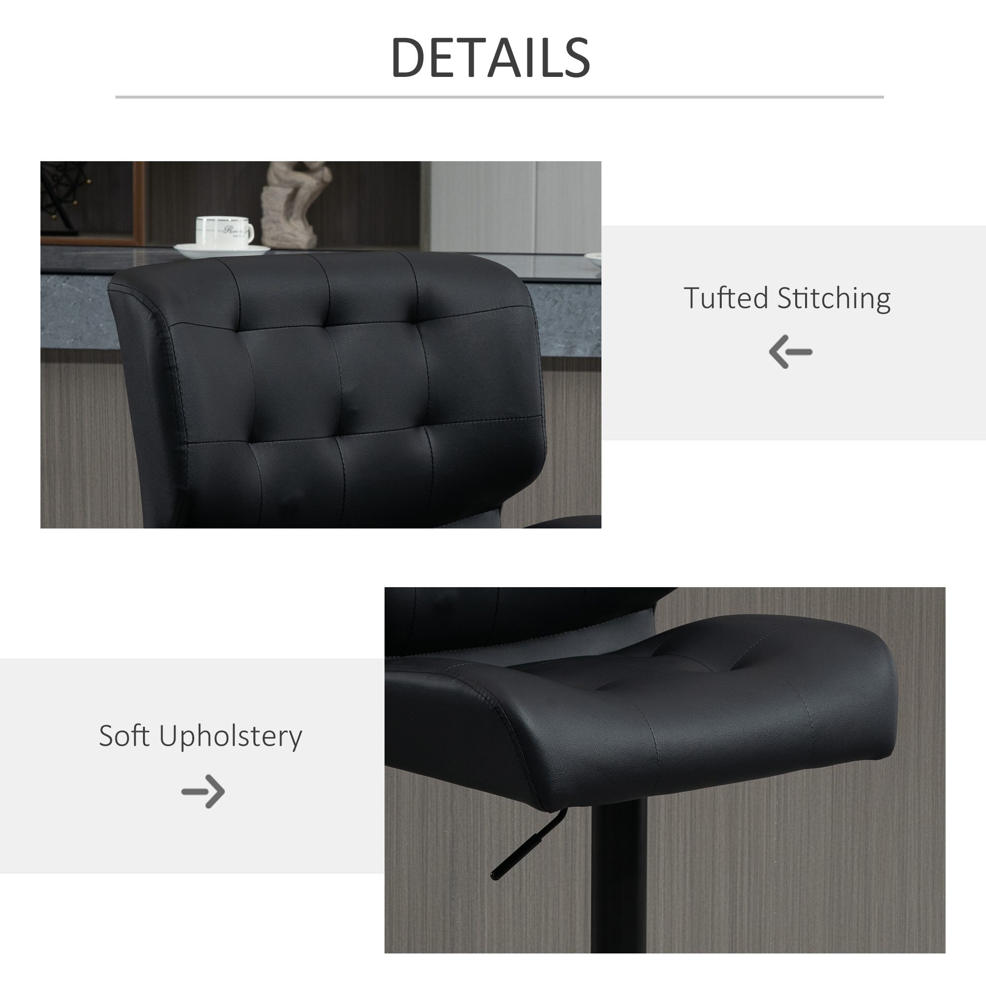 • – Tufted details enhance support tightness