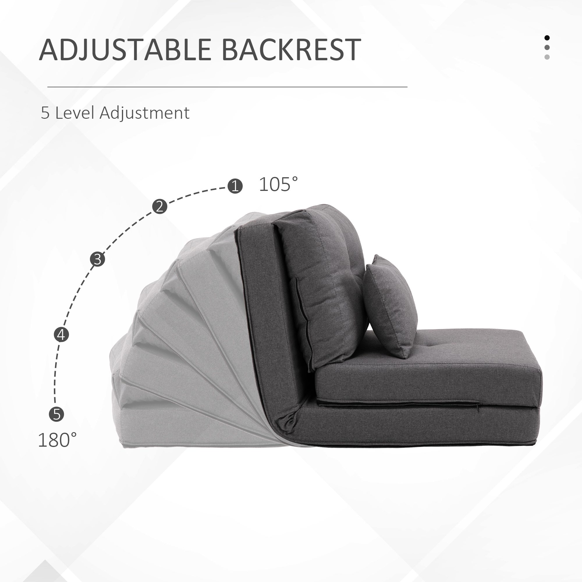 - – Adjustable backrest in 5 levels from 105° to 180°