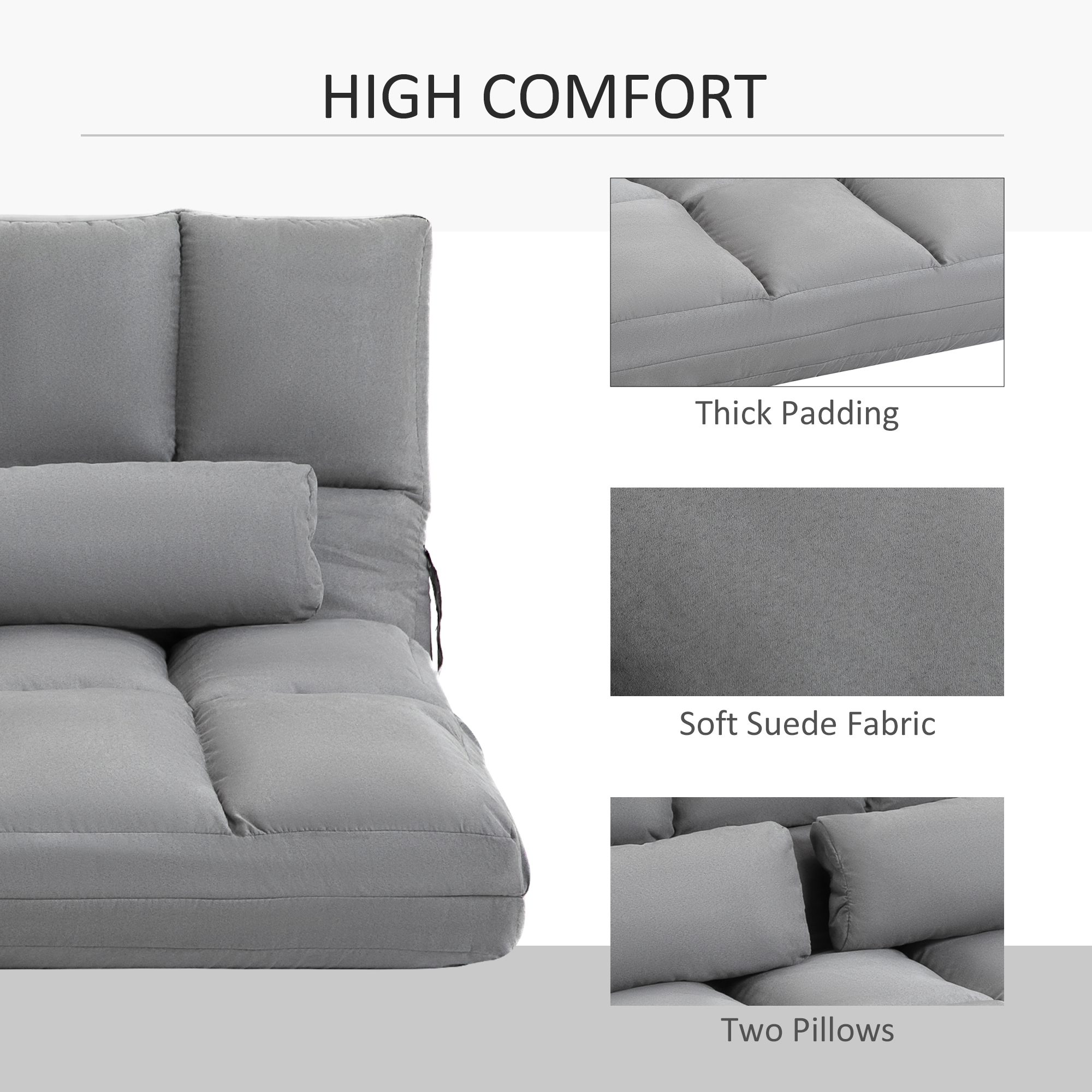 This 2-In-1 cozy sofa bed creates convenience and comfortability in any room of your home. With adjustable features, you can adjust the backrest and headrest to meet your needs, whether reading, watching TV, playing video games, or taking a nap. The sofa floor couch can also help you if you have a guest who wants to stay overnight. The thickly padded cushion and the soft suede surface can give you a comfortable experience. Enjoy your leisure time with this foldable cozy sofa from .