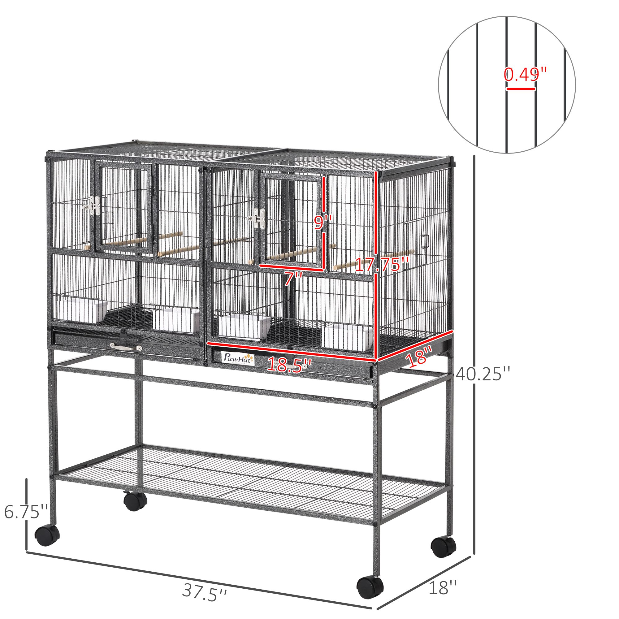 - – The middle grate can be pulled out to make the 2 individual cages into a big cage. – Ideal for small-sized birds